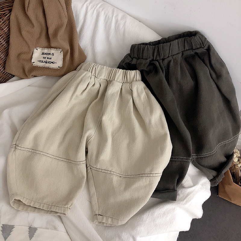 가을 새로운 도착 유행 올매치 한국 스타일 어린이 밝은 라인 바느질 느슨한 블루머 유행 아기 할란 바지