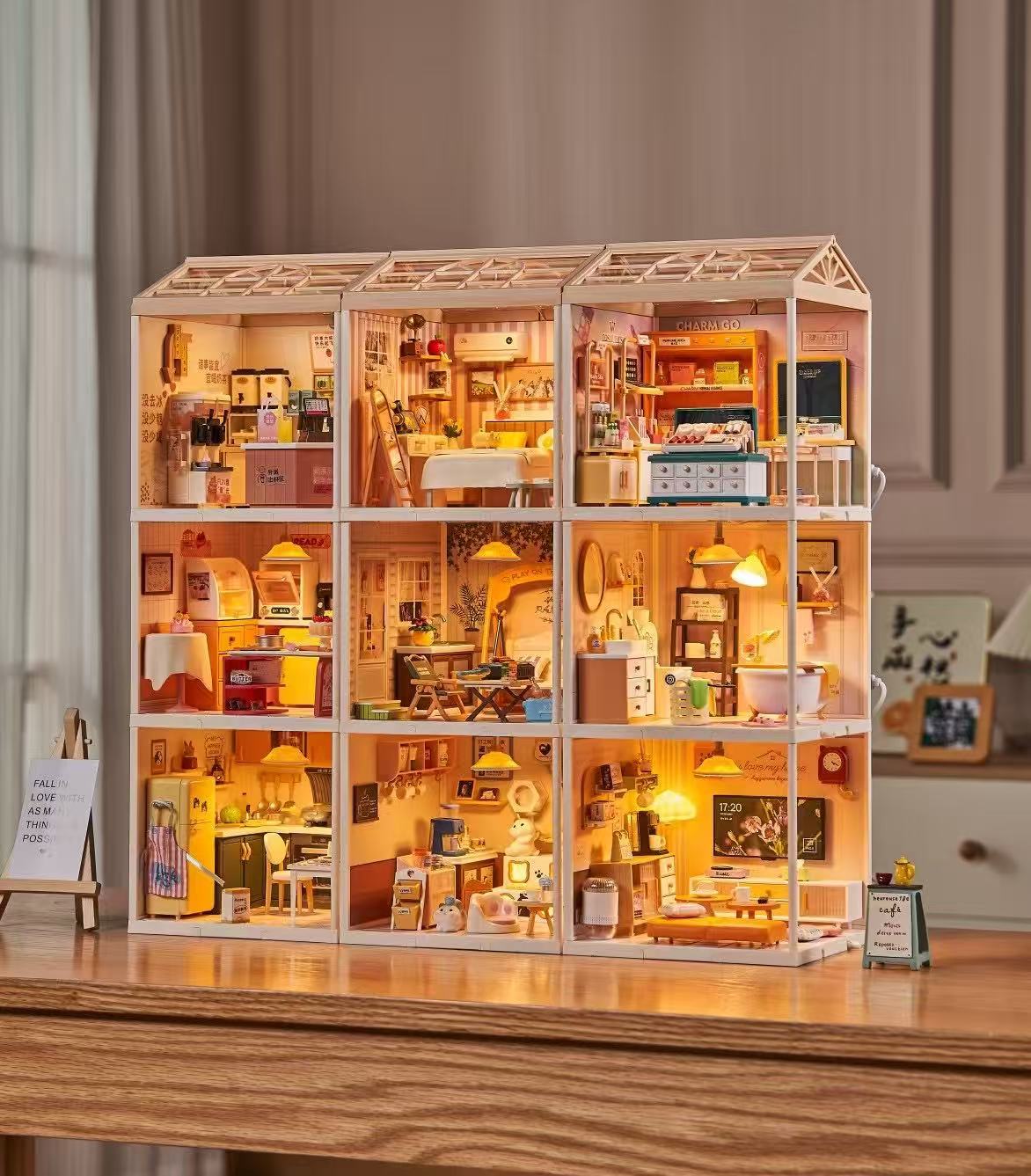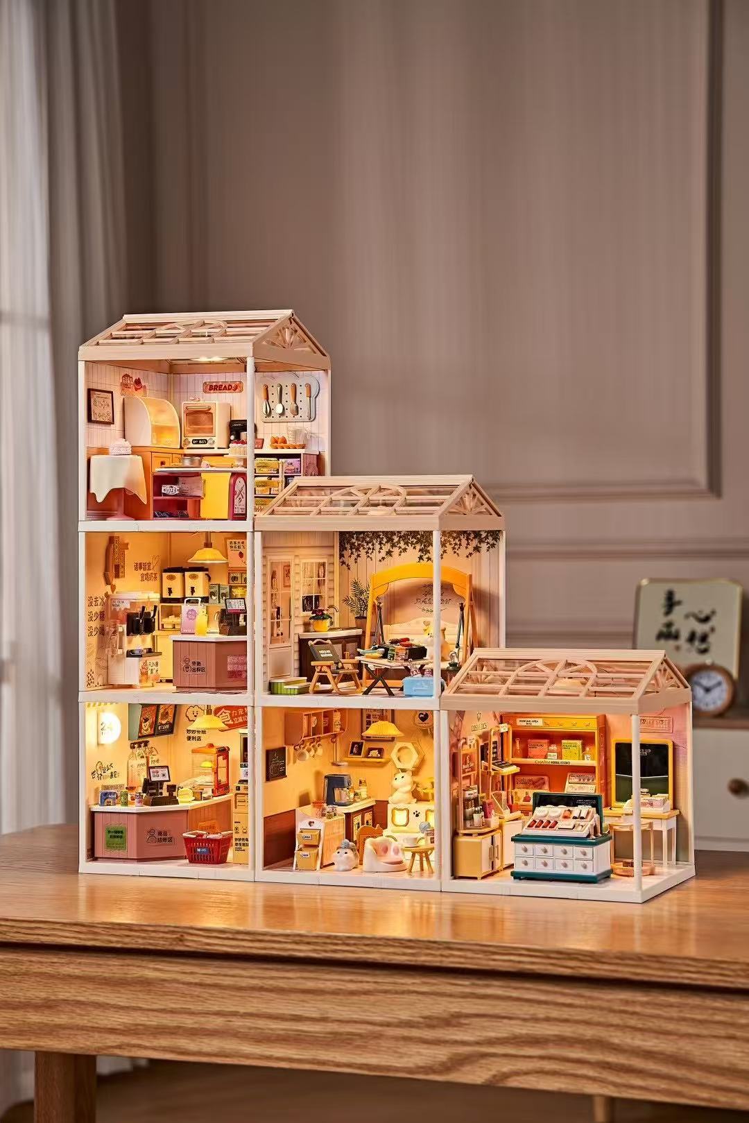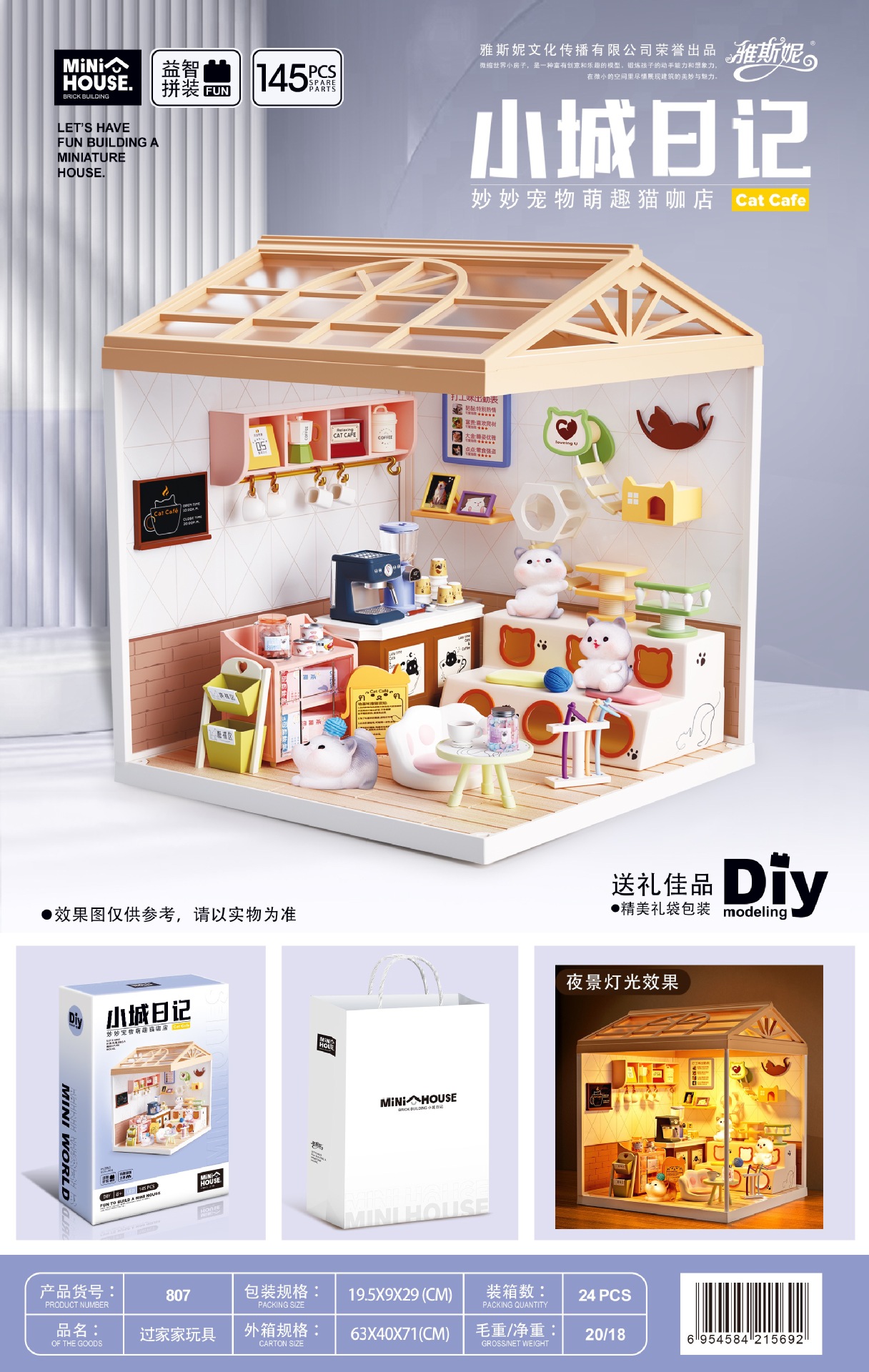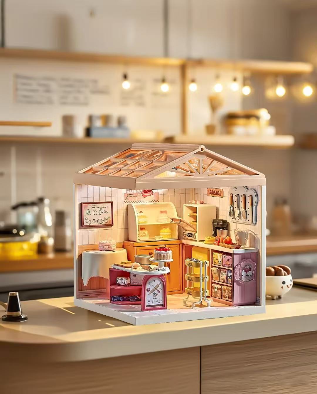 작은 마을 일기 조립 장난감 Miaomiao 시리즈 DIY 오두막 모델 빌딩 블록 입체 장식품 고양이 카페 베이킹 도매스토어 가기
