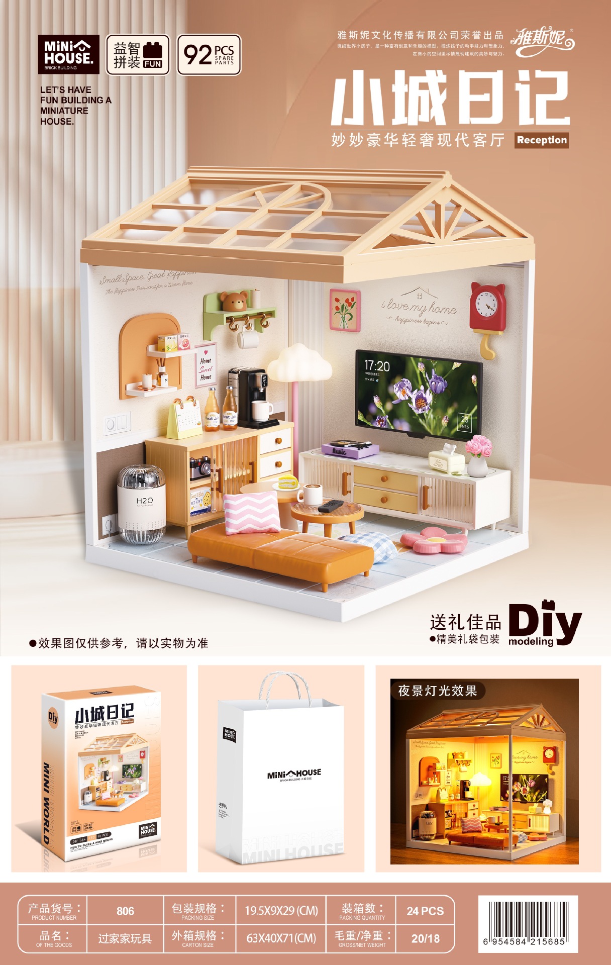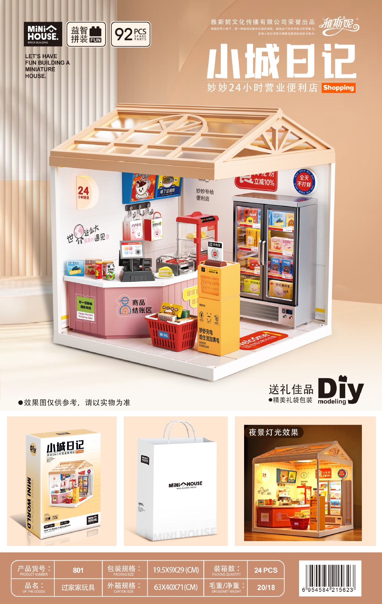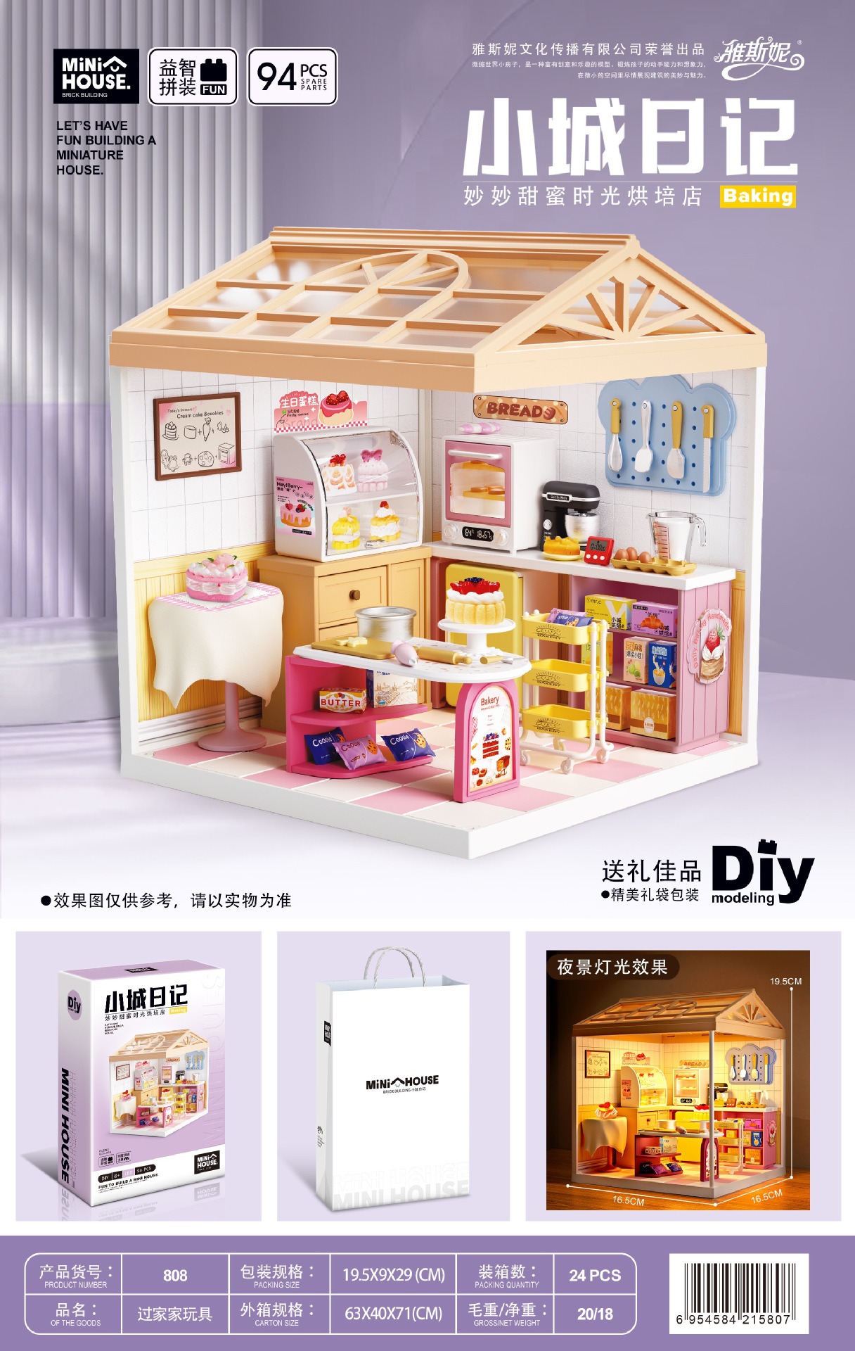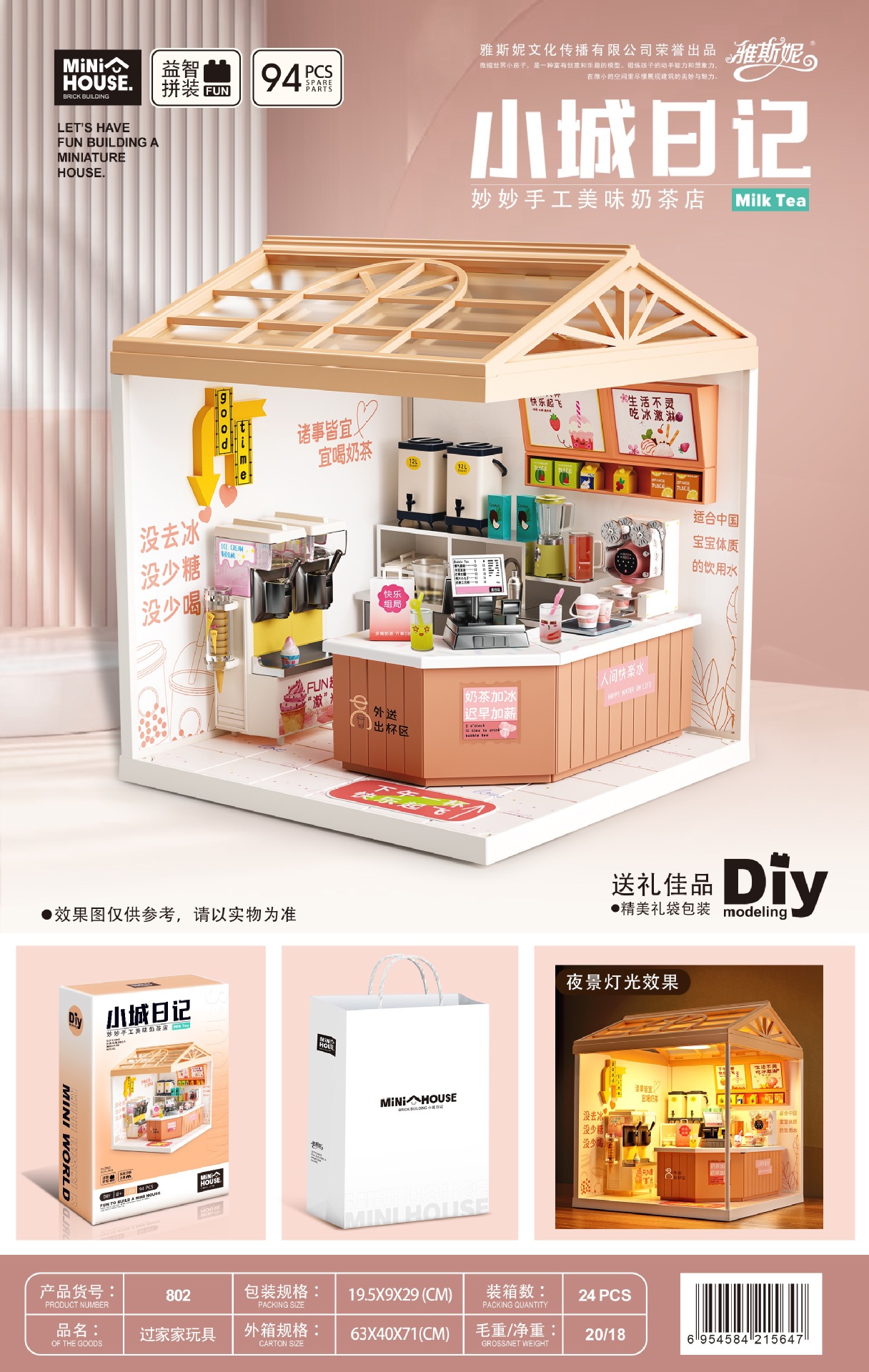 작은 마을 일기 조립 장난감 Miaomiao 시리즈 DIY 오두막 모델 빌딩 블록 입체 장식품 고양이 카페 베이킹 도매스토어 가기
