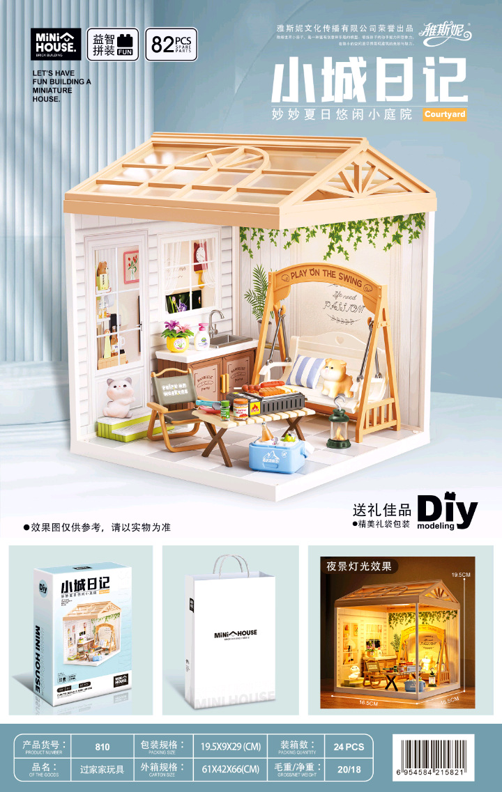 작은 마을 일기 조립 장난감 Miaomiao 시리즈 DIY 오두막 모델 빌딩 블록 입체 장식품 고양이 카페 베이킹 도매
