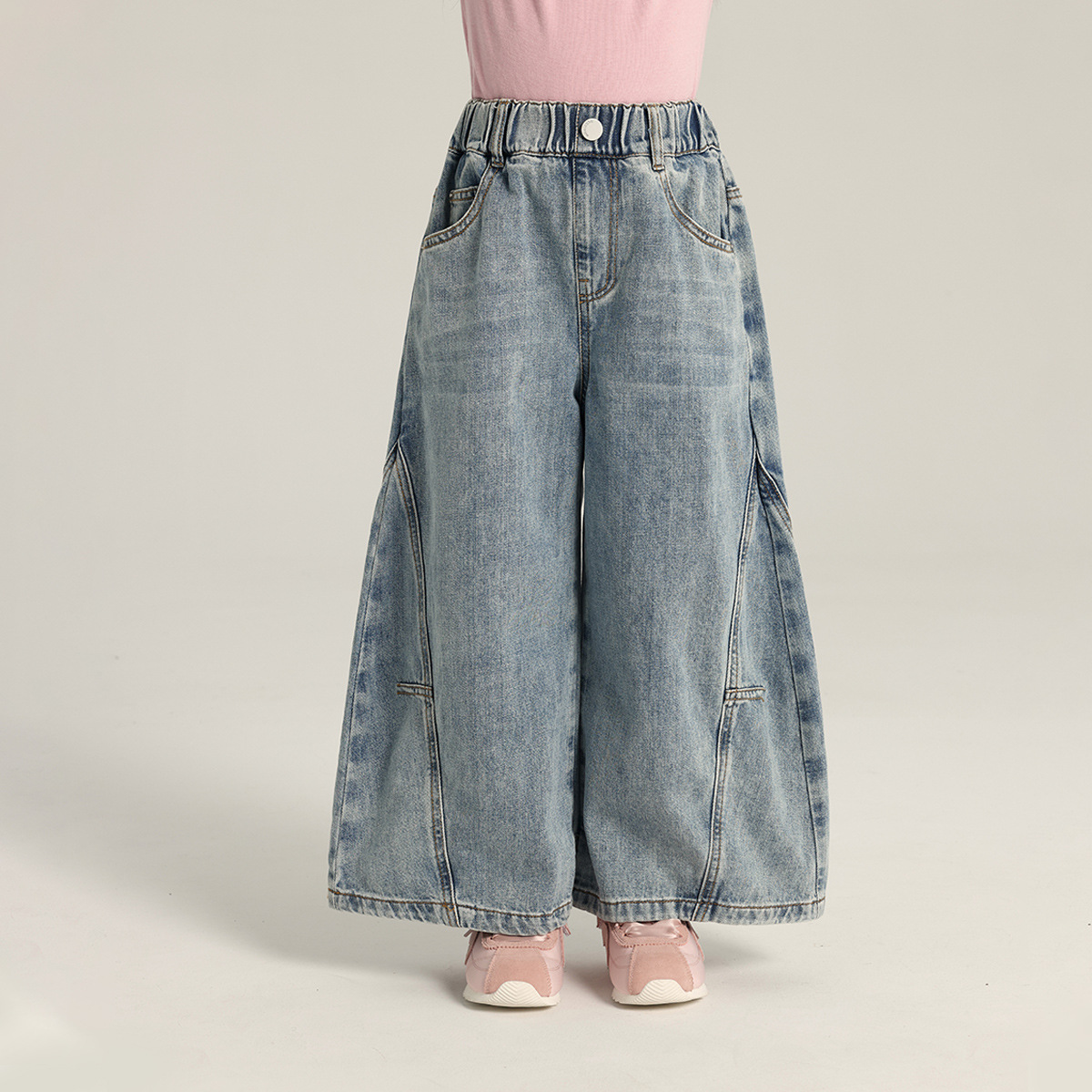 푸딩 하루 아동복 바지 2025 신상 소녀 올매치 와이드 레그 청바지 편안한 어린이 마체테 바지스토어 가기