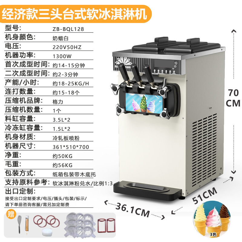 • 유형 128 우유 왁스 흰색 데스크탑 3헤드 아이스크림 기계