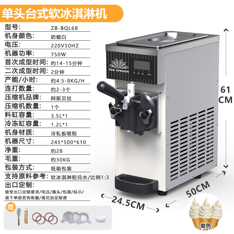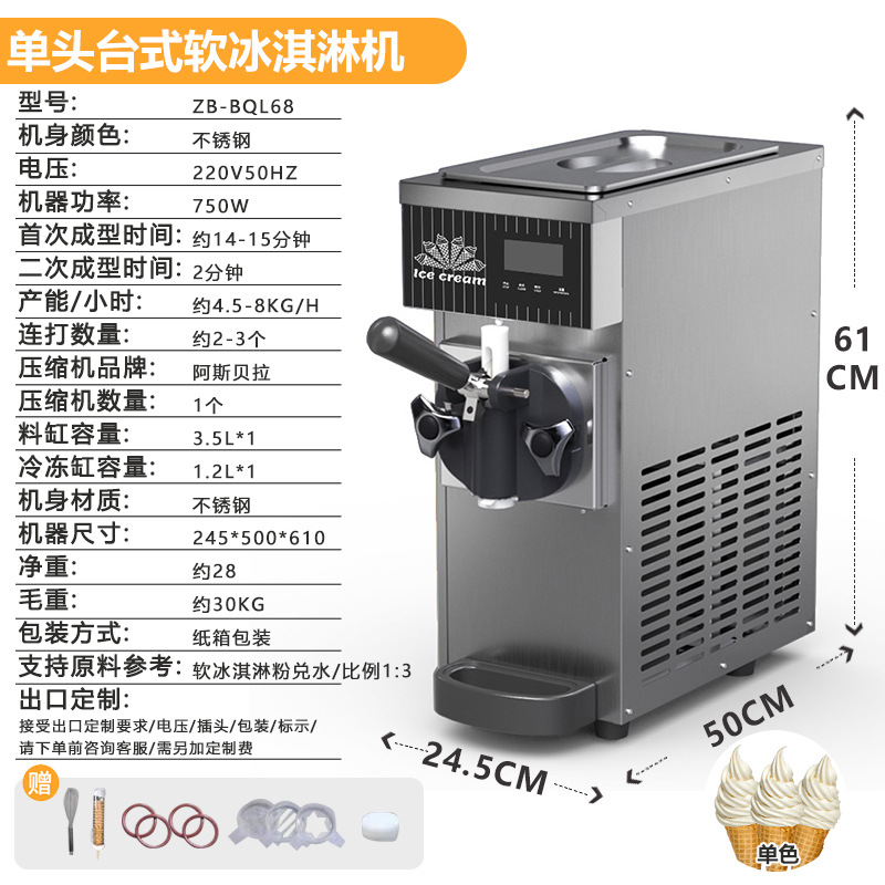 • 유형 68 스테인레스 스틸 데스크탑 단일 헤드 아이스크림 기계