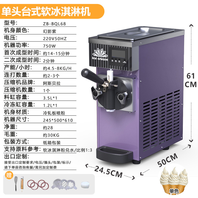 • 모델 68 팬텀 퍼플 데스크탑 싱글 헤드 아이스크림 기계
