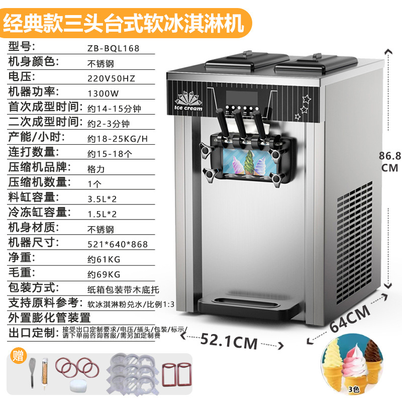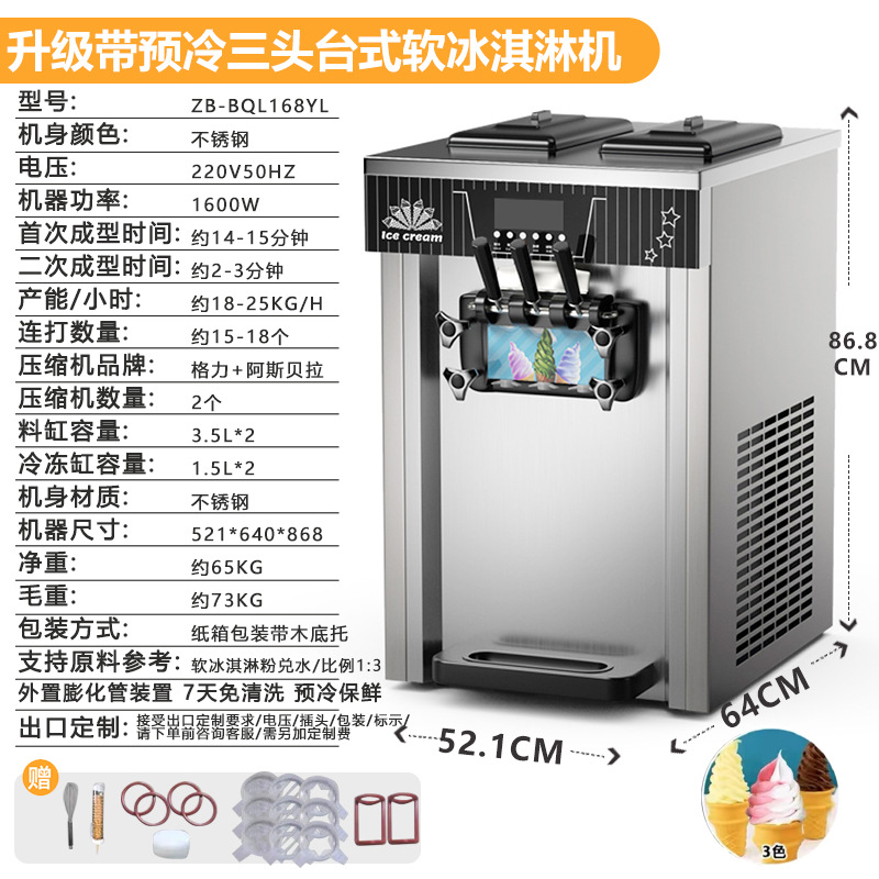 • 168 유형 데스크탑 소형 3 헤드 사전 냉각 신선 유지 아이스크림 기계