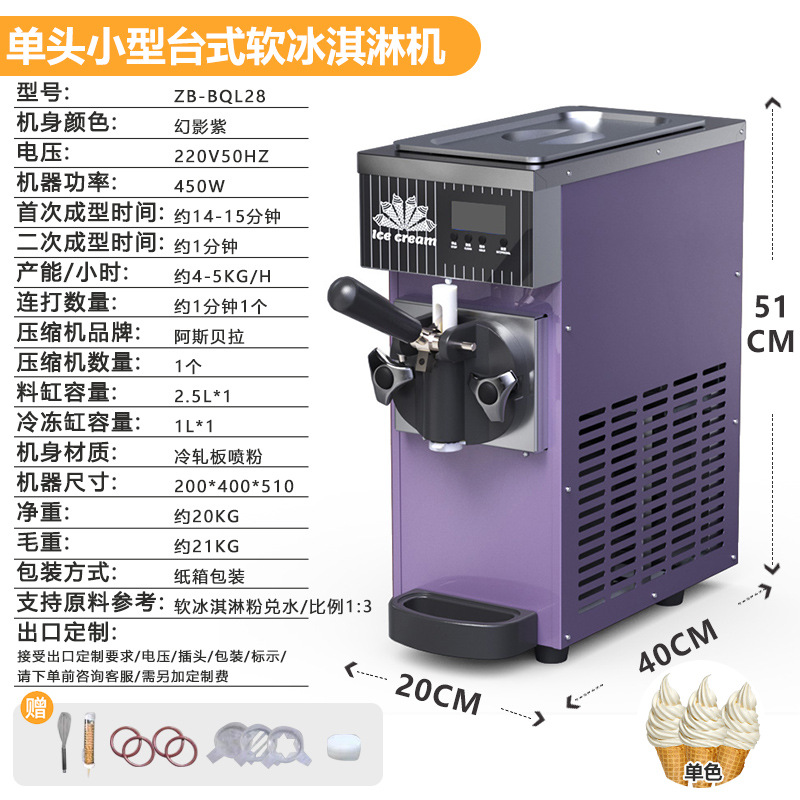 • 유형 28 팬텀 퍼플 데스크탑 싱글 헤드 아이스크림 기계