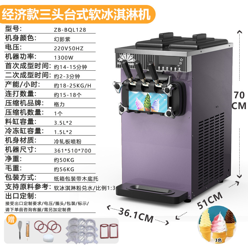 • 모델 128 팬텀 퍼플 데스크탑 3헤드 아이스크림 기계