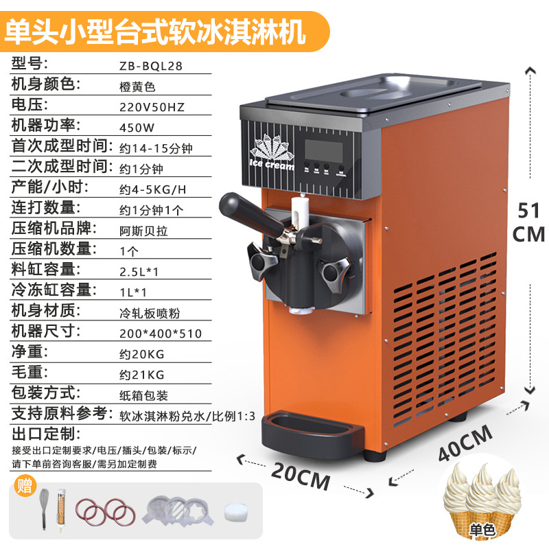 • 유형 28 주황색 데스크탑 단일 헤드 아이스크림 기계