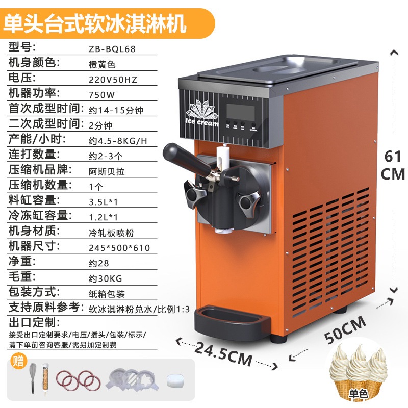 • 유형 68 주황색 데스크탑 단일 헤드 아이스크림 기계