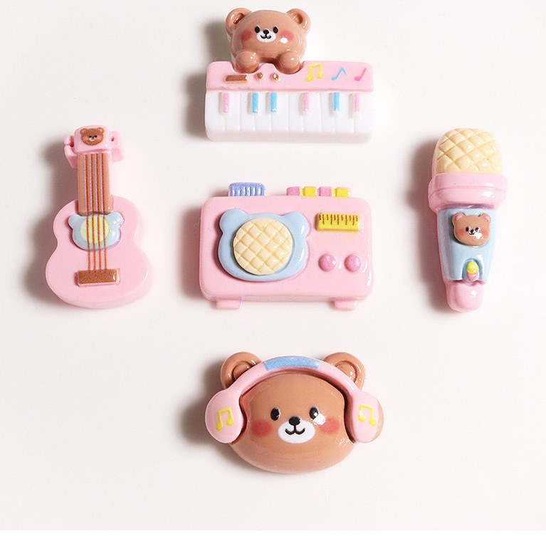 밝은 수지 액세서리 도매 곰 악기 피아노 마이크 기타 DIY 수제 반제품