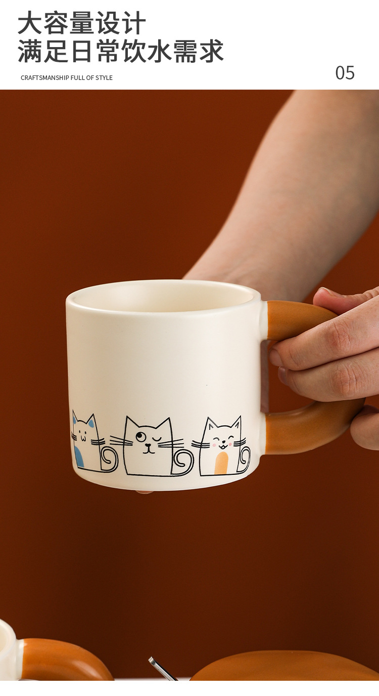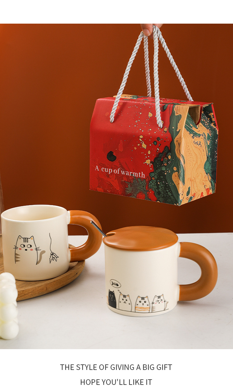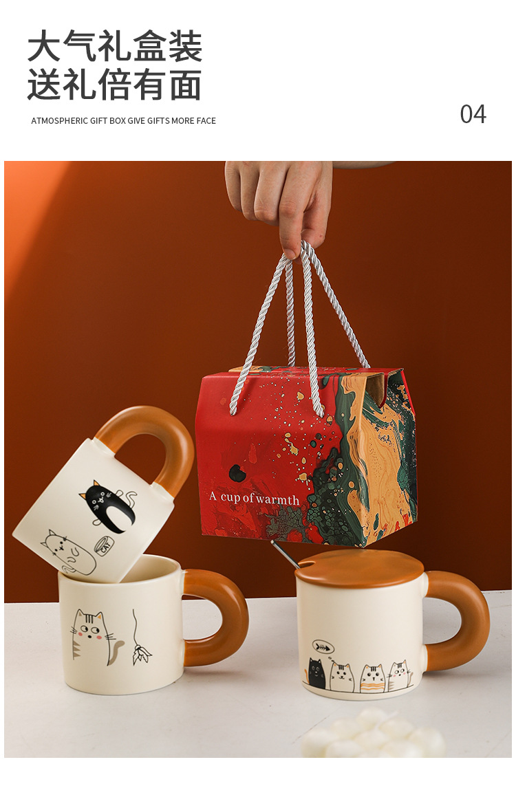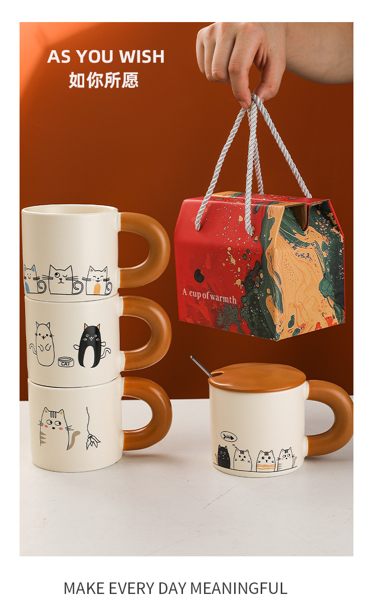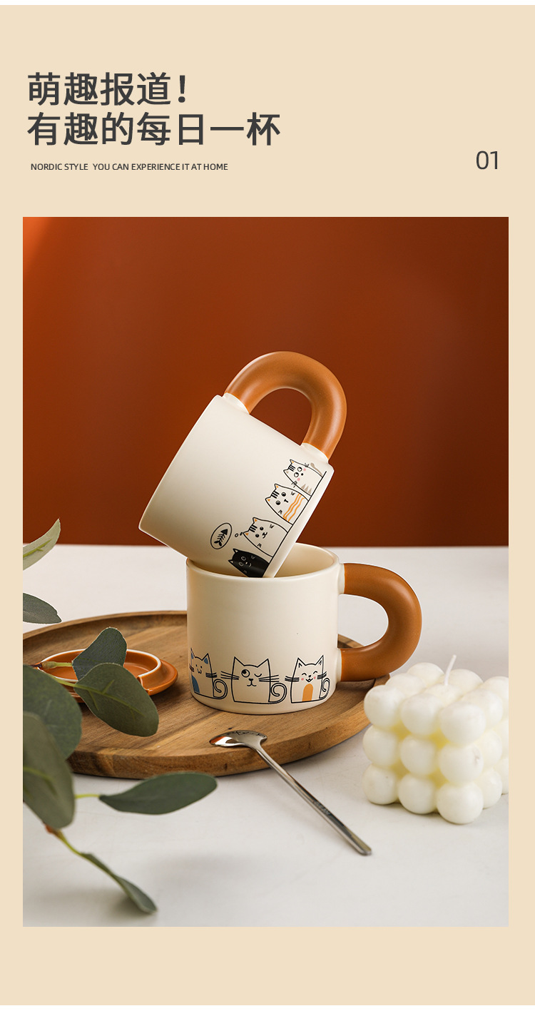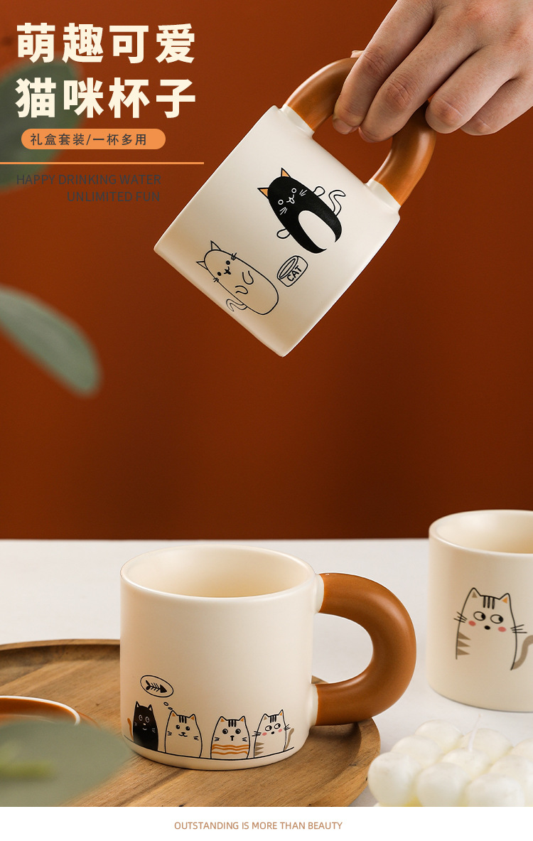귀여운 고양이 만화 세라믹 컵 우유 후부 머그 홈 커피 컵 아침 식사 컵 높은 아름다움 가치 커플 컵스토어 가기