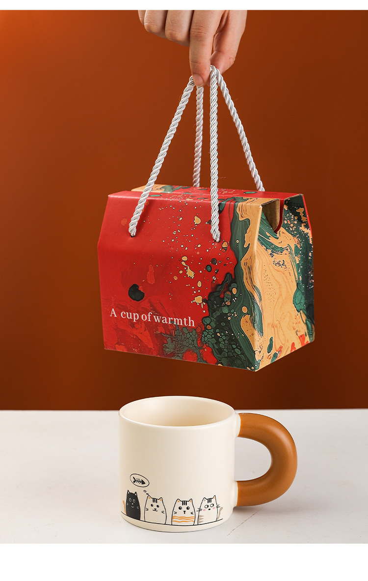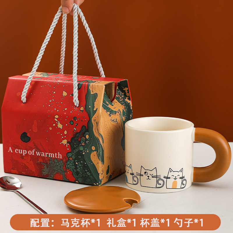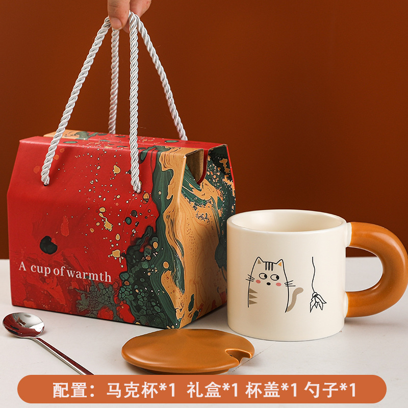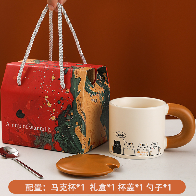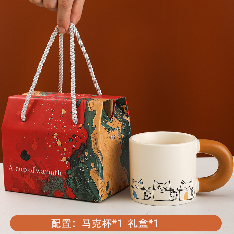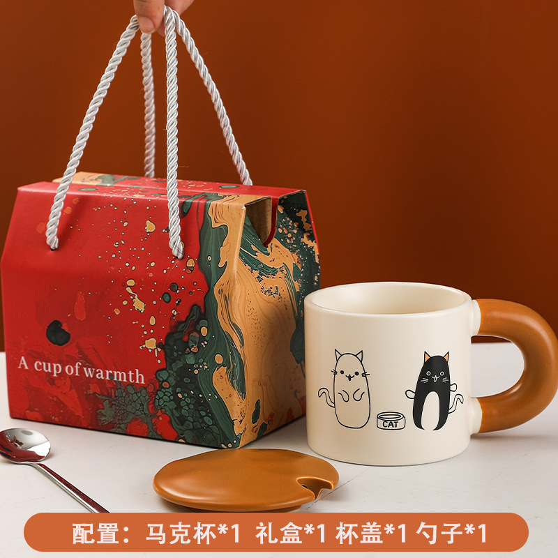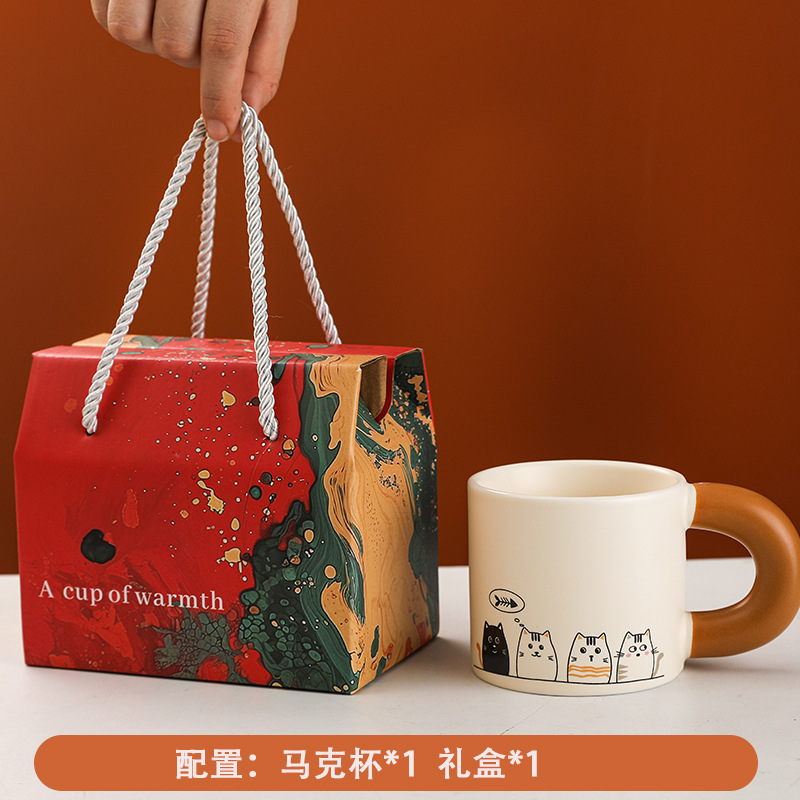 귀여운 고양이 만화 세라믹 컵 우유 후부 머그 홈 커피 컵 아침 식사 컵 높은 아름다움 가치 커플 컵스토어 가기