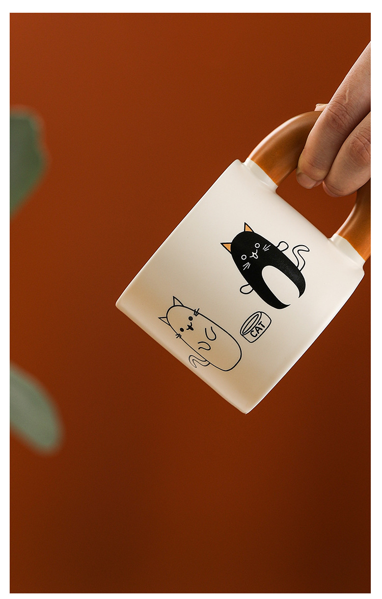 귀여운 고양이 만화 세라믹 컵 우유 후부 머그 홈 커피 컵 아침 식사 컵 높은 아름다움 가치 커플 컵