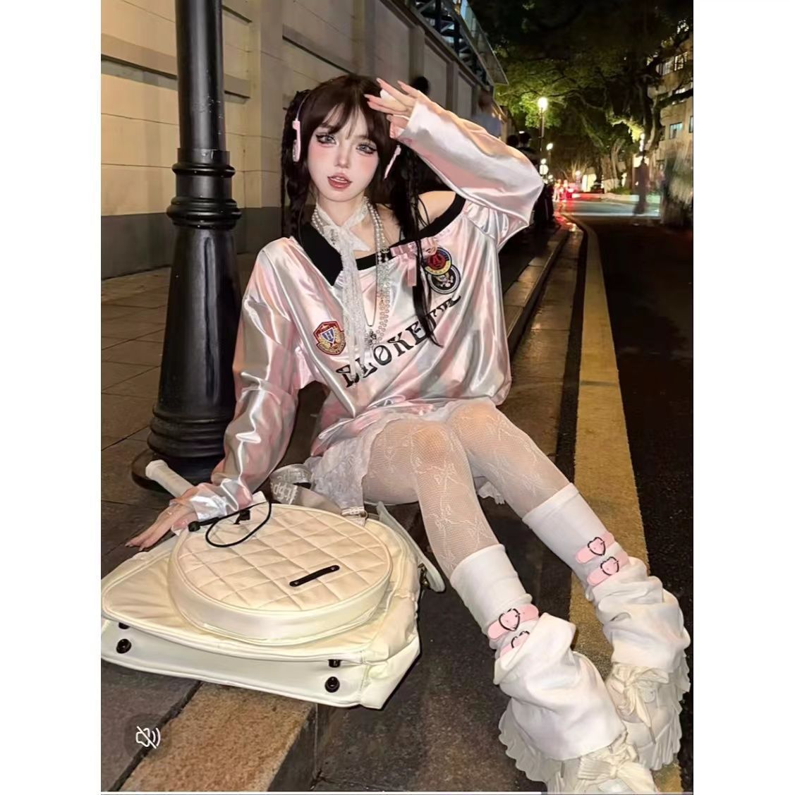 축구 아기 미국 레트로 크로스 숄더 야구 세트 여자 스웨트 이른 가을 새로운 스파이스 걸스 스포츠웨어 캐주얼 탑스토어 가기