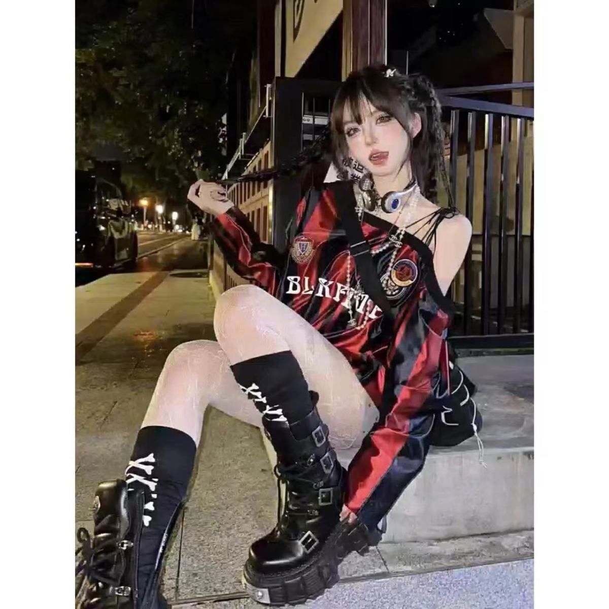 축구 아기 미국 레트로 크로스 숄더 야구 세트 여자 스웨트 이른 가을 새로운 스파이스 걸스 스포츠웨어 캐주얼 탑