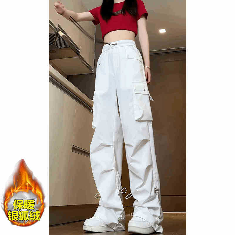 여성용 검은색 바지 2025 새로운 스타일 작은 봄, 가을 느슨한 방풍 및 방수 등산 가을, 겨울 대형 충전 바지 캐주얼스토어 가기