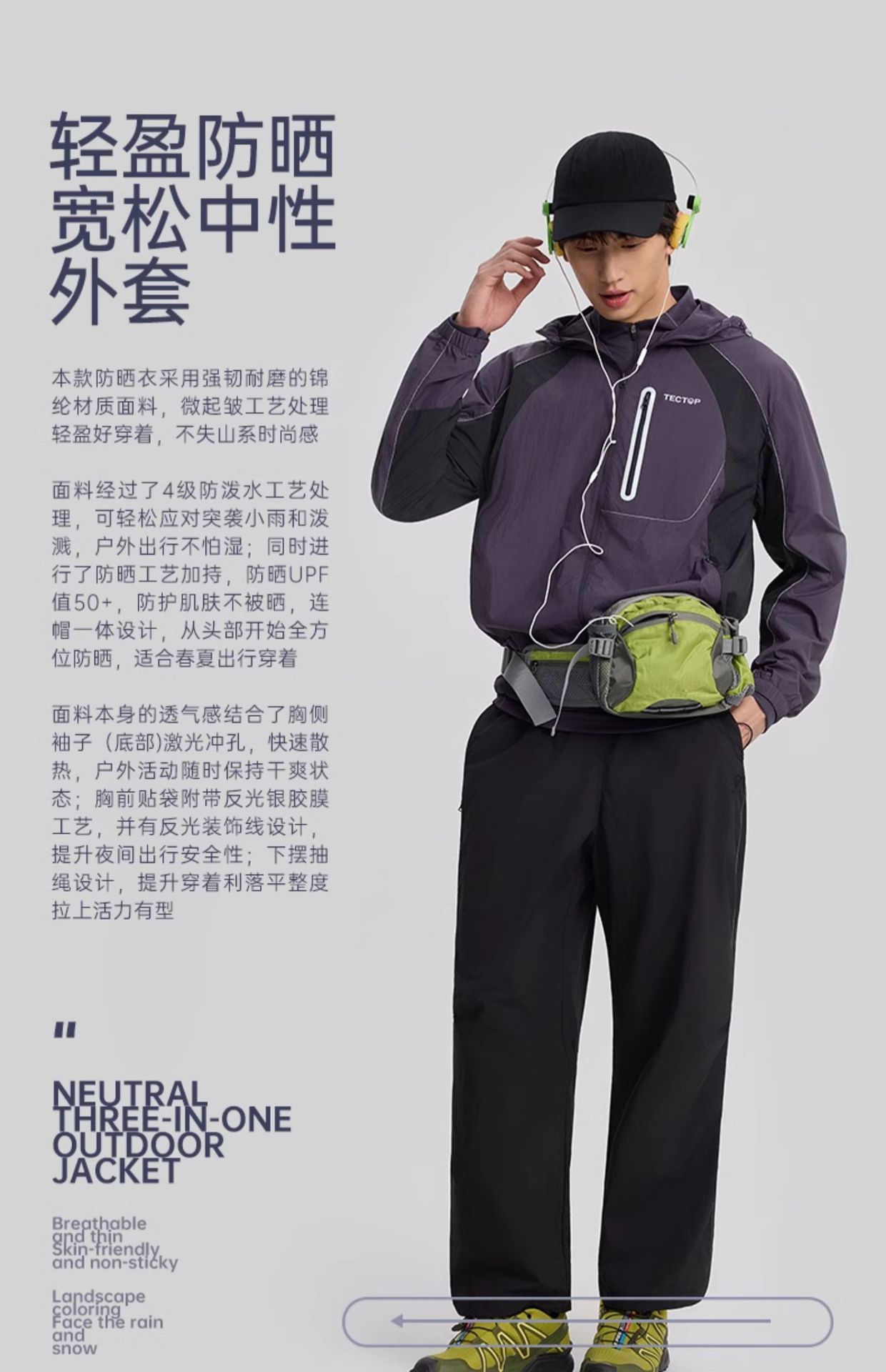 봄/여름 2025 Tanto 야외 Upf50 태양 보호 의류 봄/여름 반 튀는 통기성 대비 컬러 느슨한 재킷 남성과 여성스토어 가기