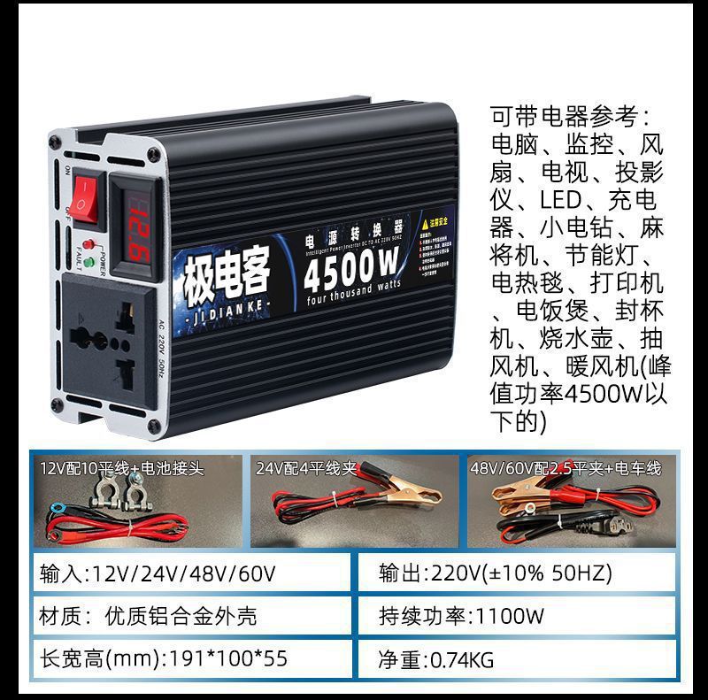고출력 차량 장착 가정용 변압기 배터리 12V 24V 48V 60V-220V 전력 변환 인버터