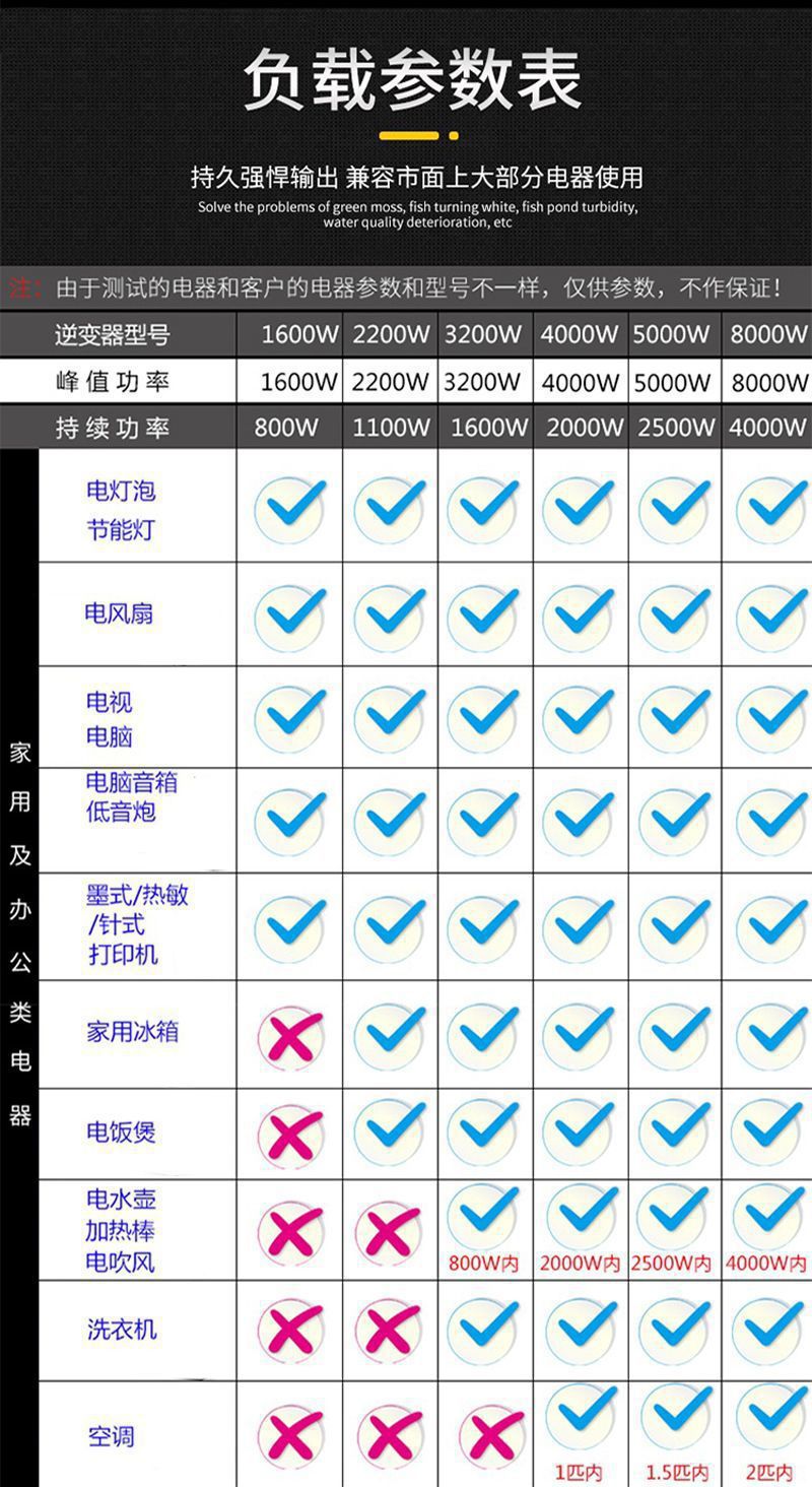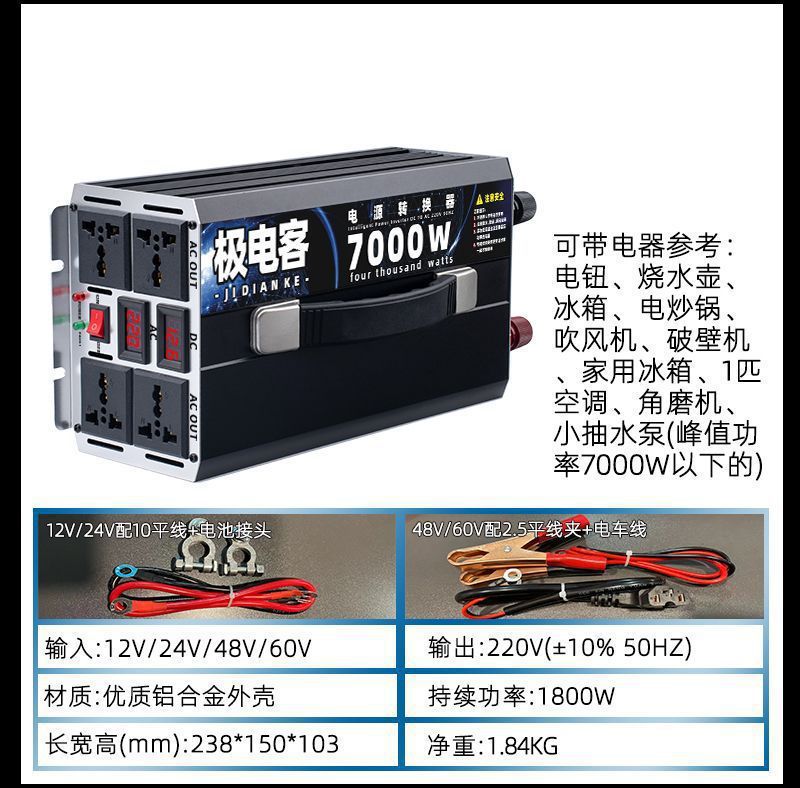 • 주전자, 에어컨 및 기타 전원을 갖춘 지능형 사인파 7000W