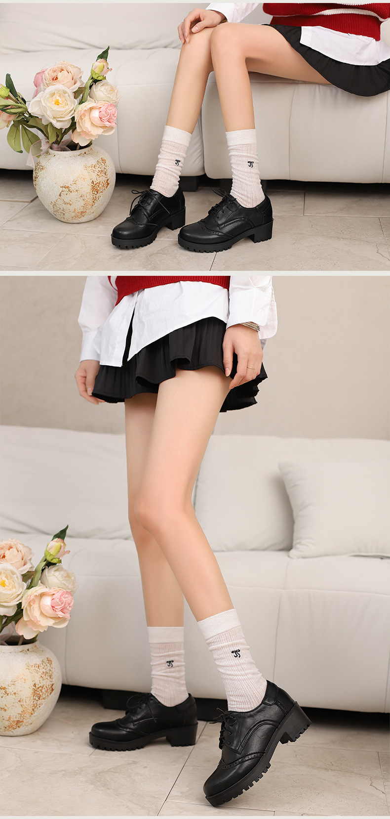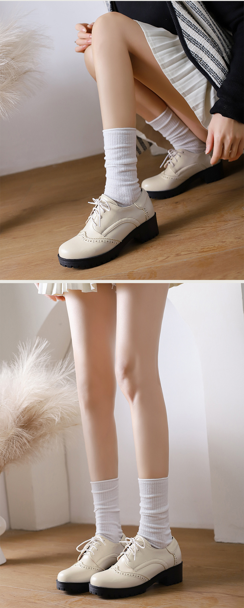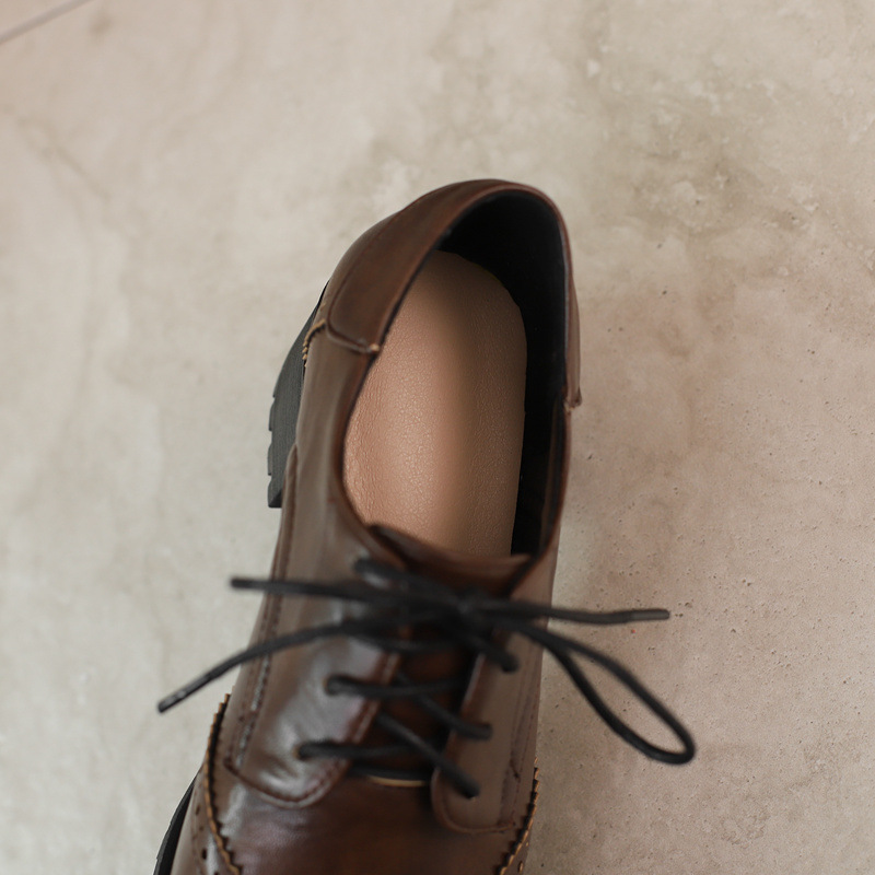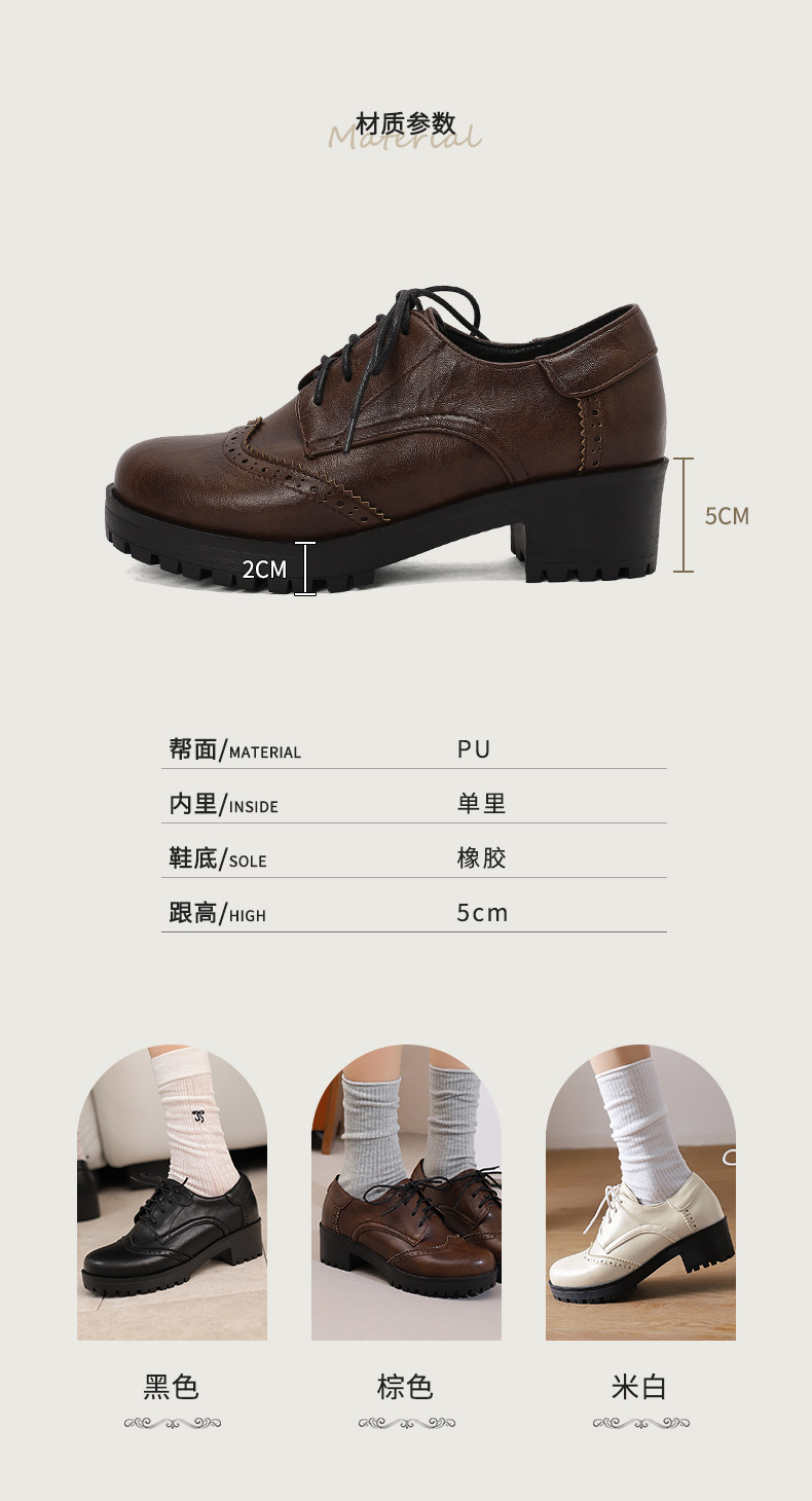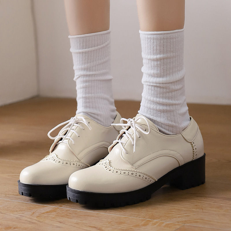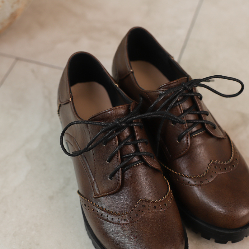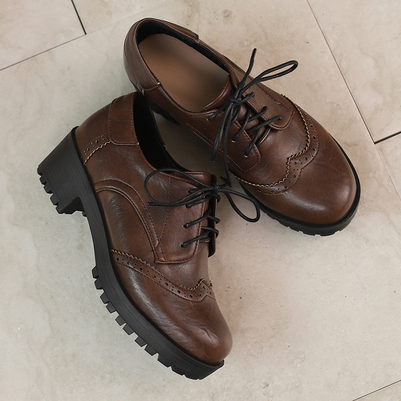 34-45 플러스 사이즈 작은 가죽 신발 봄과 가을 두꺼운 단일 청키 힐 하이힐 레트로 프론트 레이스 업 대외 무역 국경 여성 신발스토어 가기