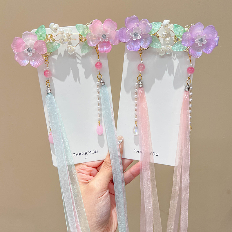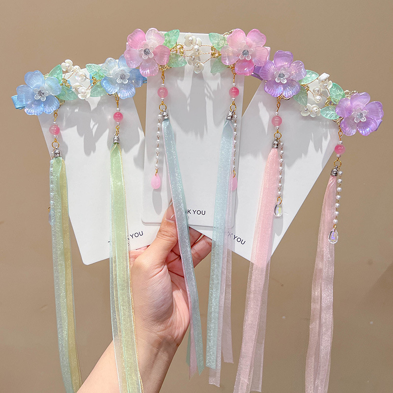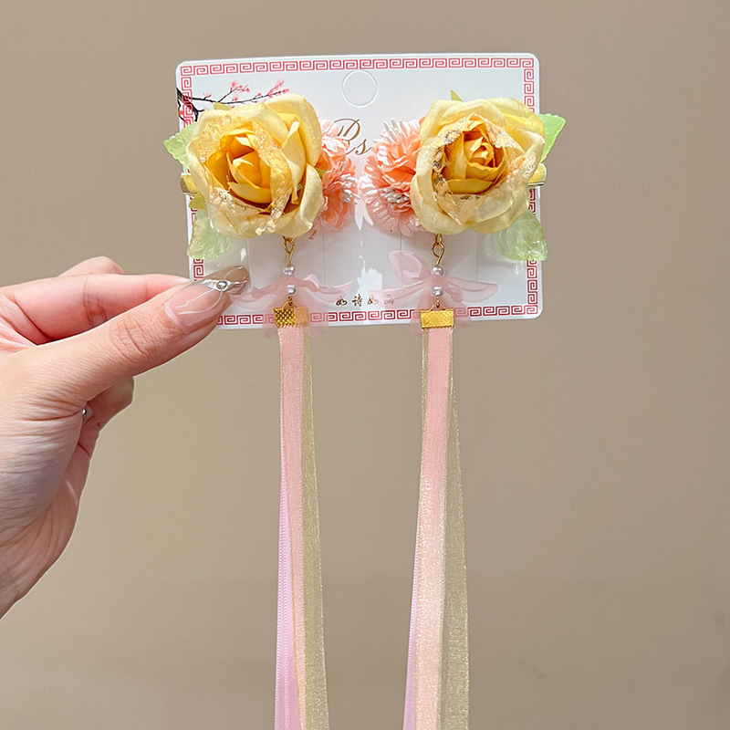소녀의 슈퍼 요정 한푸 헤드폰 어린 소녀의 중국 스타일 고대 옷 헤어 액세서리 어린이 골동품 헤어핀 꽃술 헤어핀 헤어핀