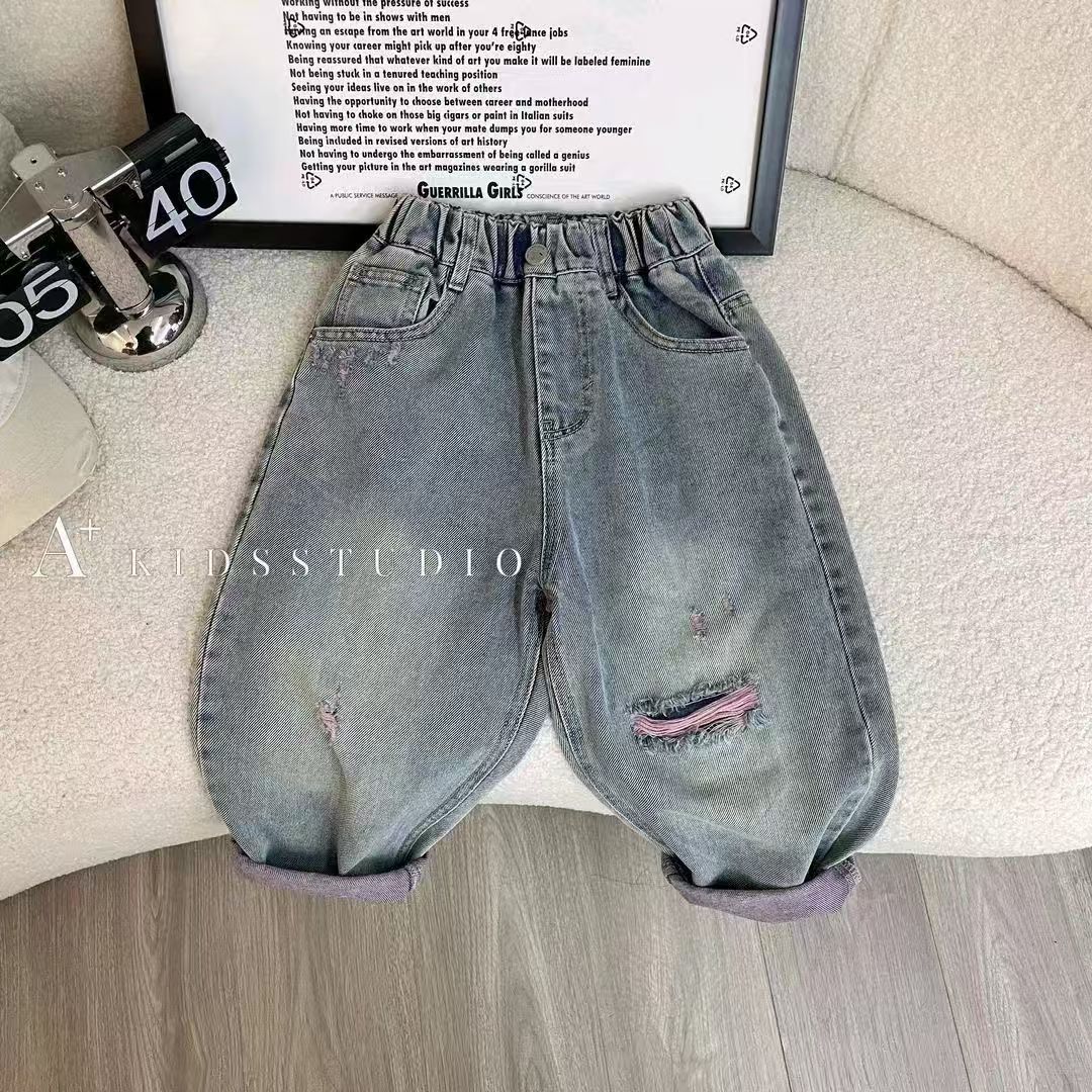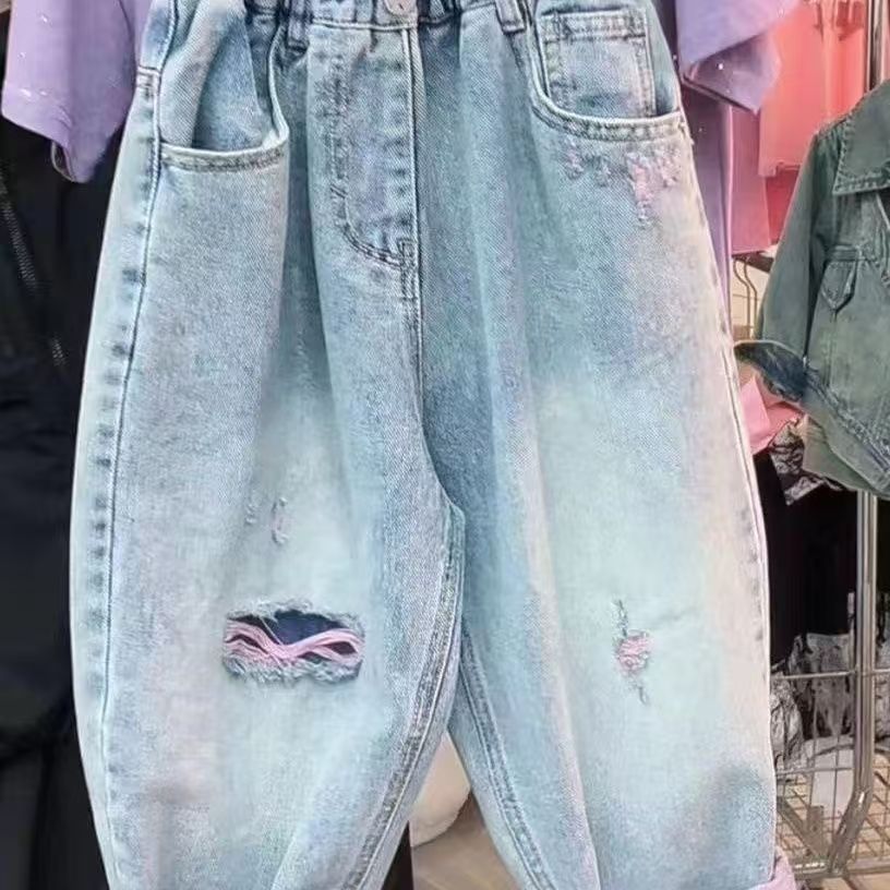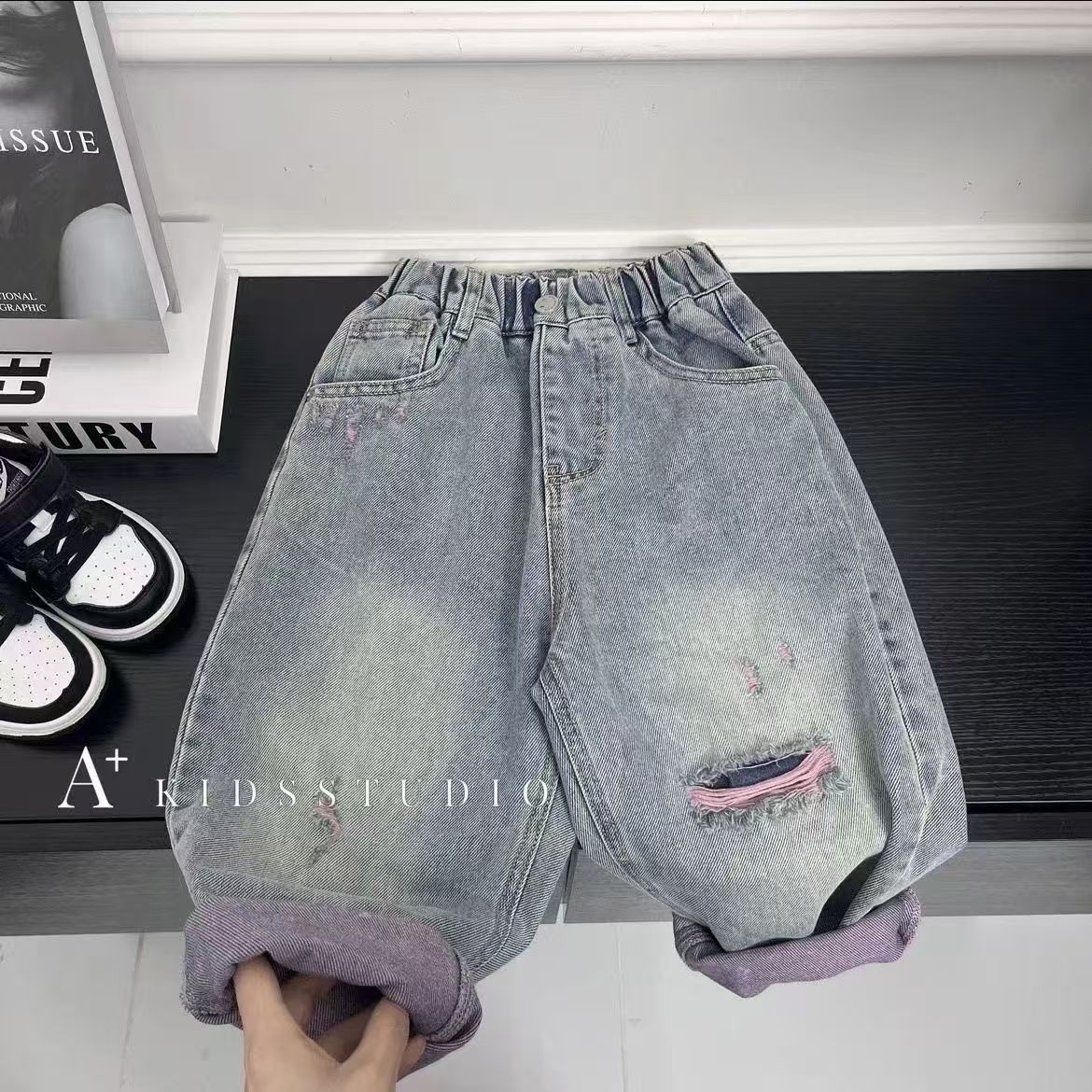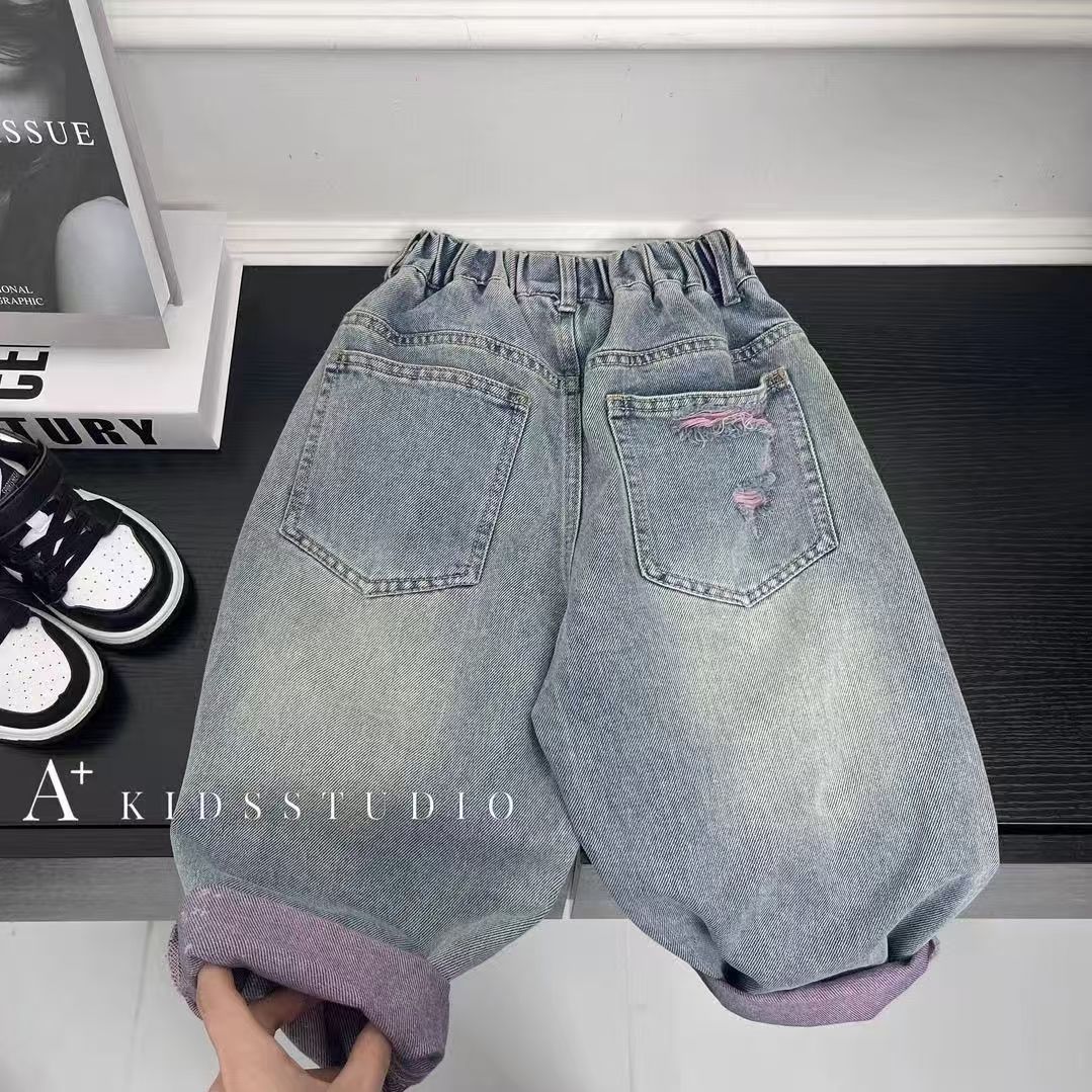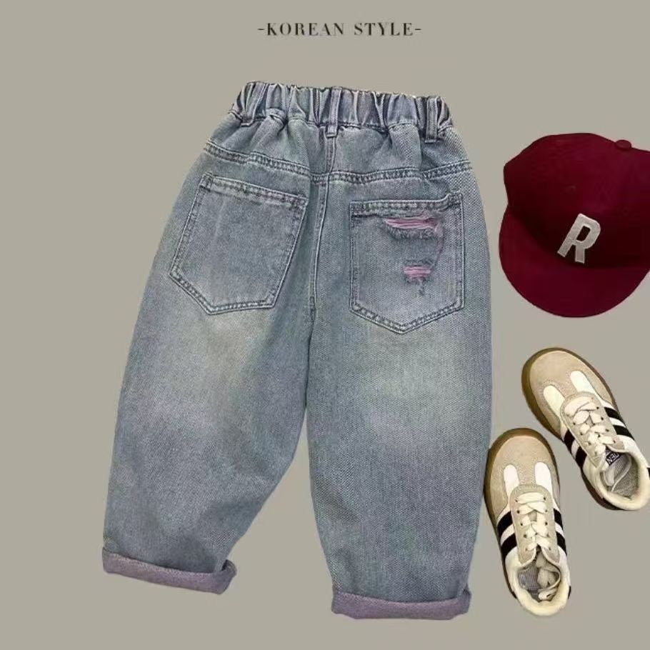 새로운 소년 소녀 데님 바지 어린이 청바지 봄과 가을 중소형 어린이 폭발 바지 세련된 패션 트렌디스토어 가기