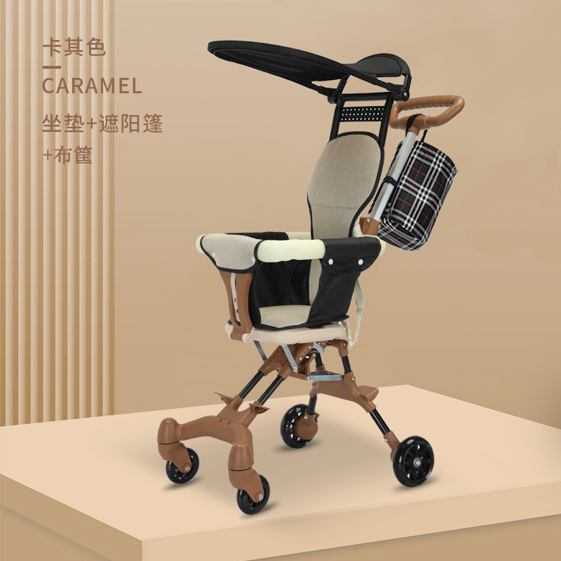 • 베이지 유모차 [업그레이드된 만능바퀴] + 시트쿠션 + 베개 + 수납바구니 + 수납가방 + 차양