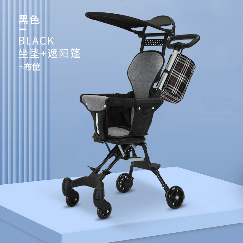 • 블랙 카트 PU 휠 + 시트 쿠션 + 수납 바구니 + 차양