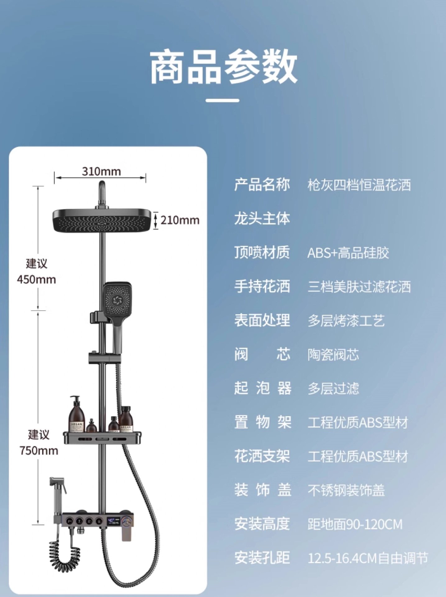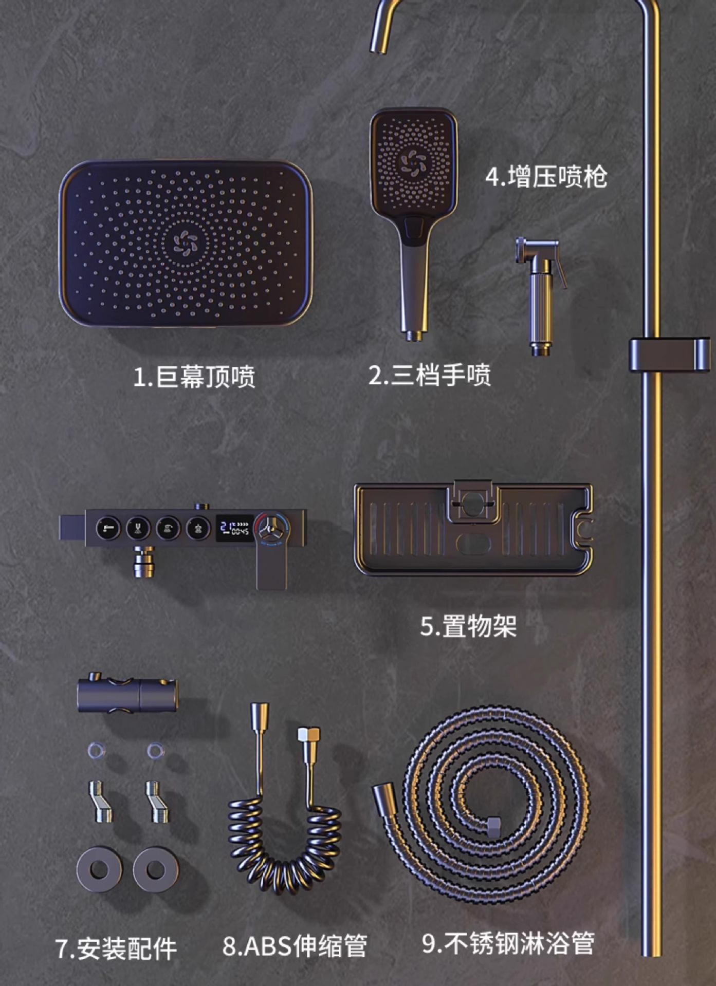 아마존 샤워 세트 소스 공장 욕실 가압 일정한 온도 샤워 완전한 국경 간 직접 공급 세트