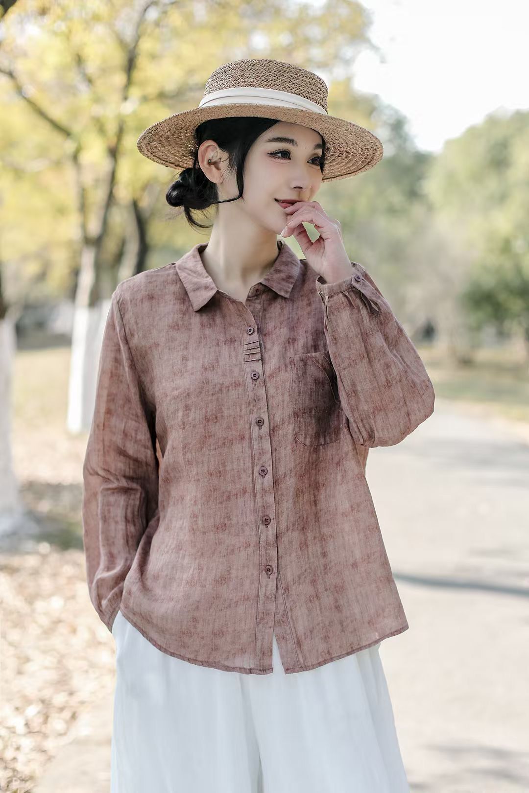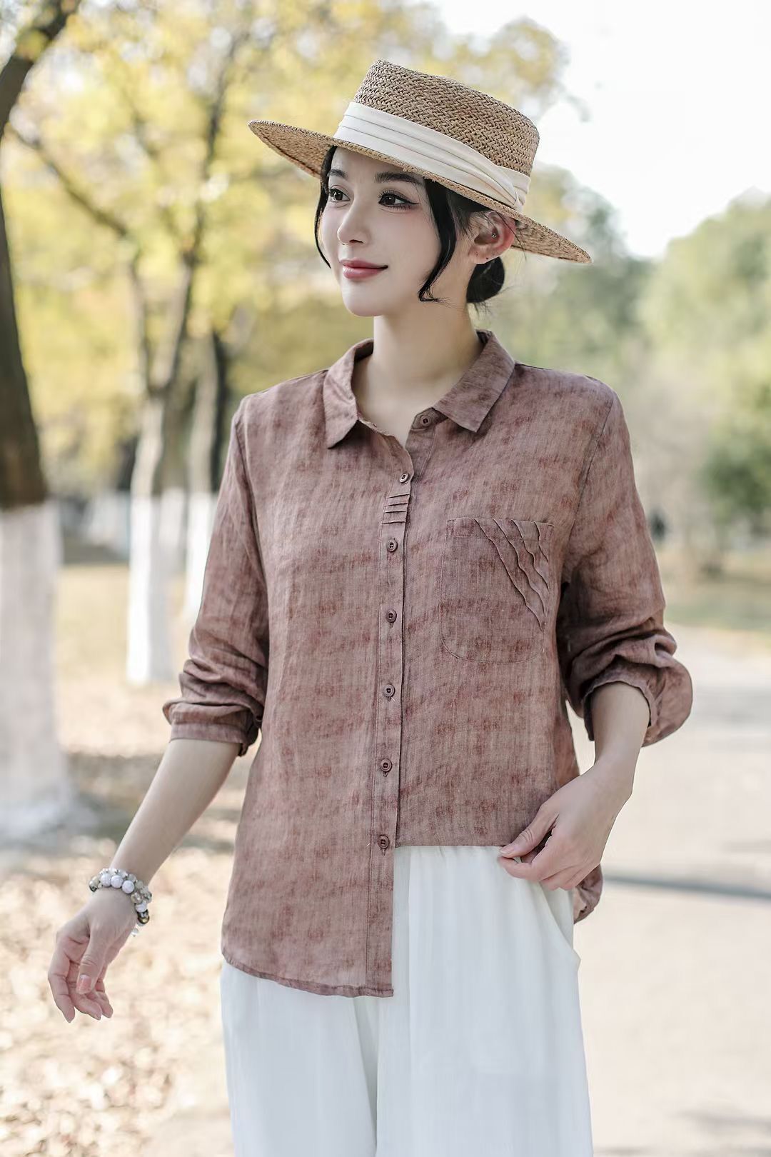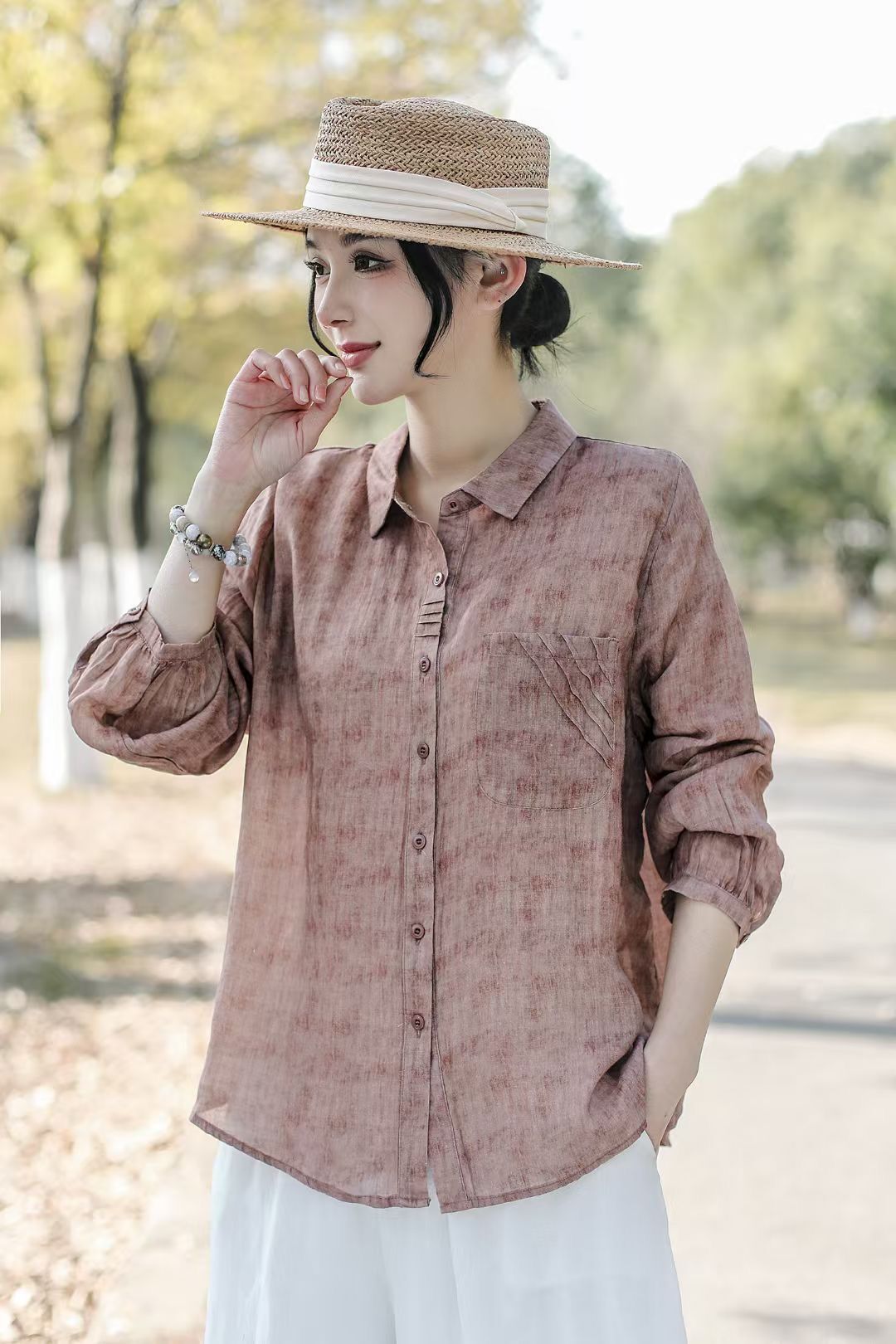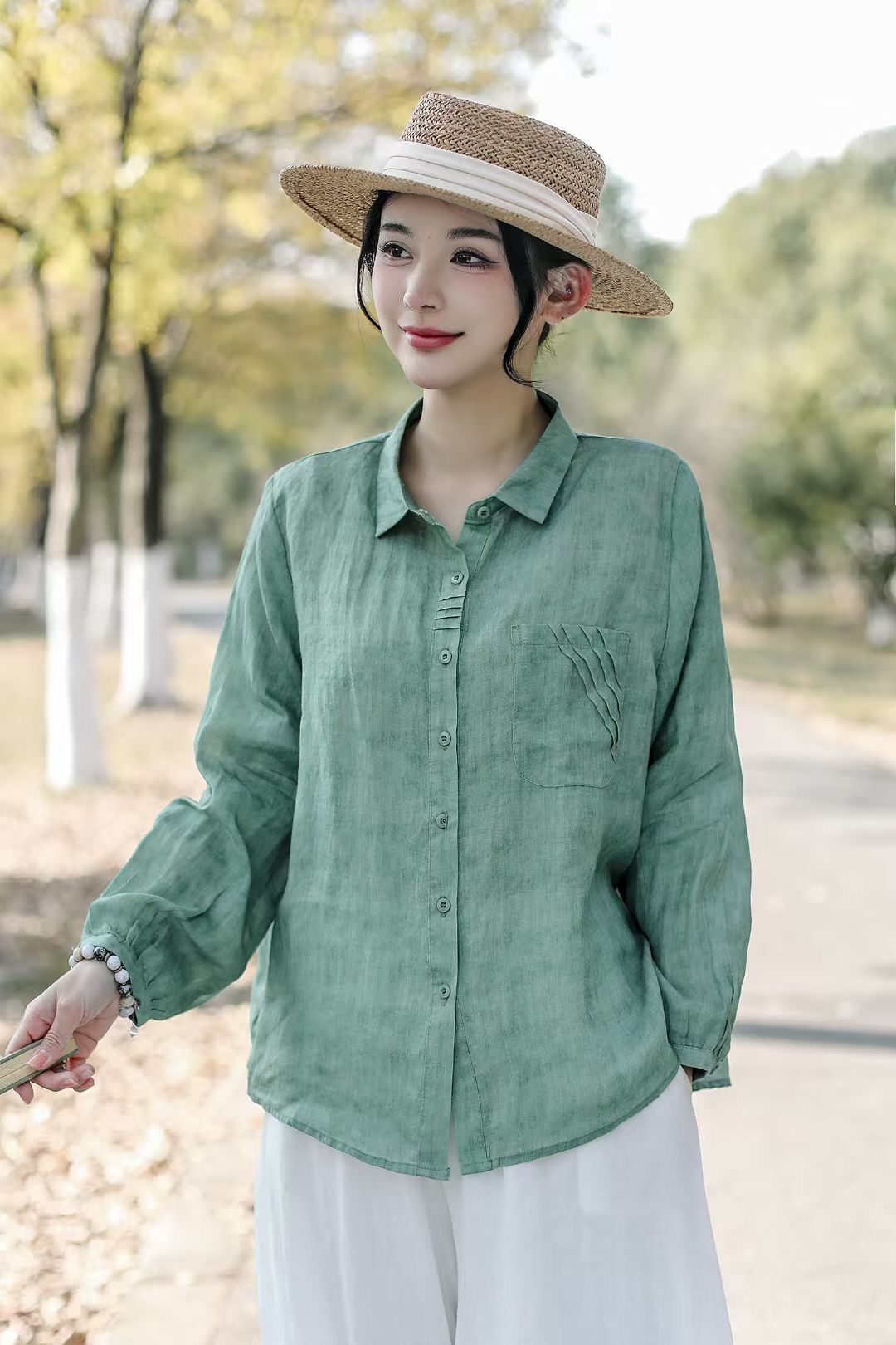 봄 2025 새로운 예술적 복고풍 느슨한 옷깃 셔츠 옷깃 포켓 주름 셔츠