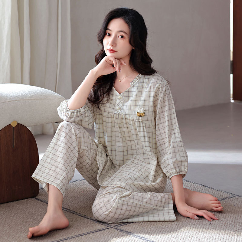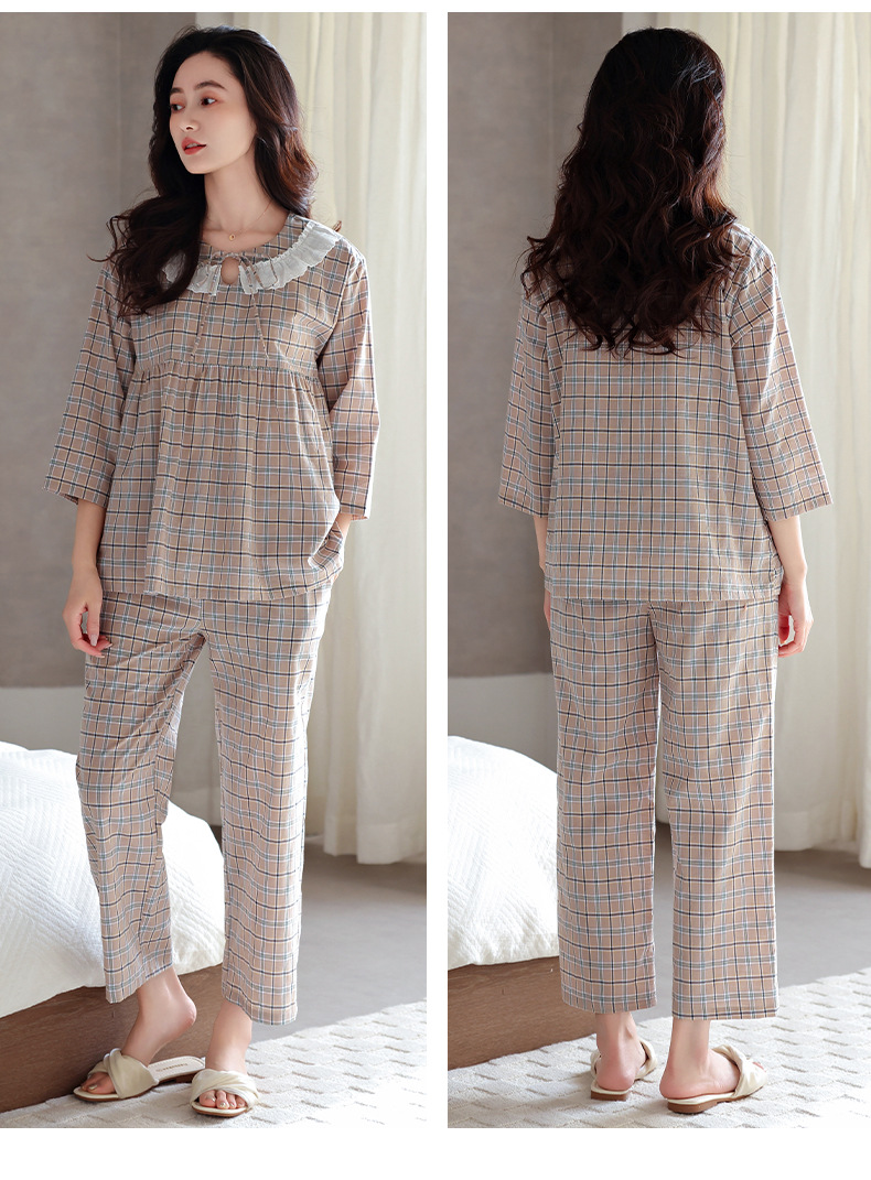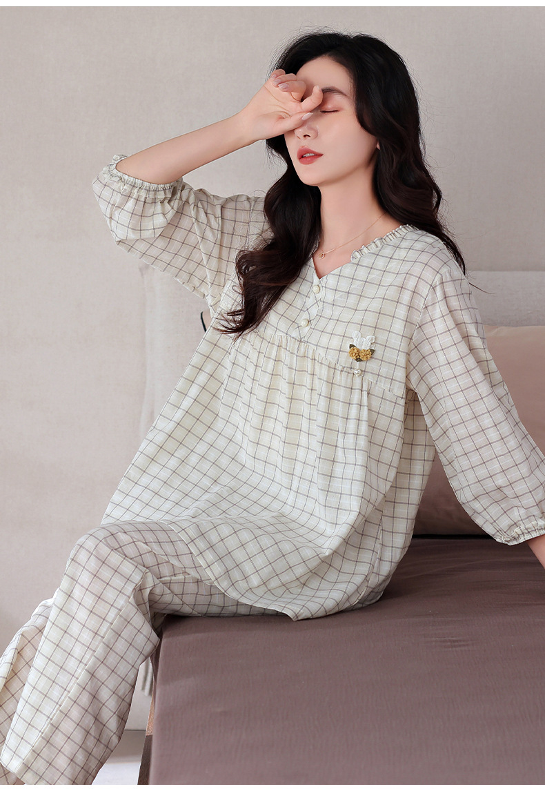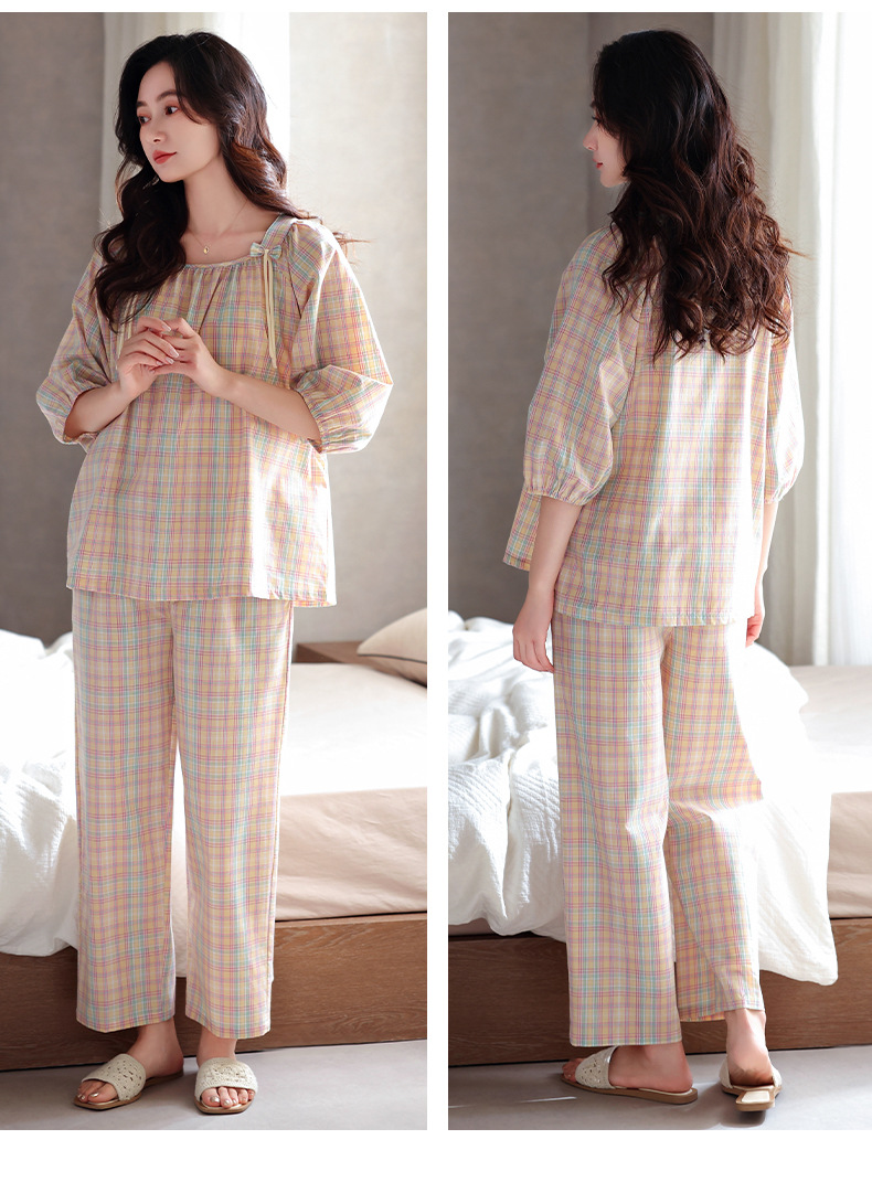 잠옷 여성의 봄과 여름 면화 슬리브 바지 중년 어머니 짠 면화 플러스 사이즈 홈 옷 세트스토어 가기