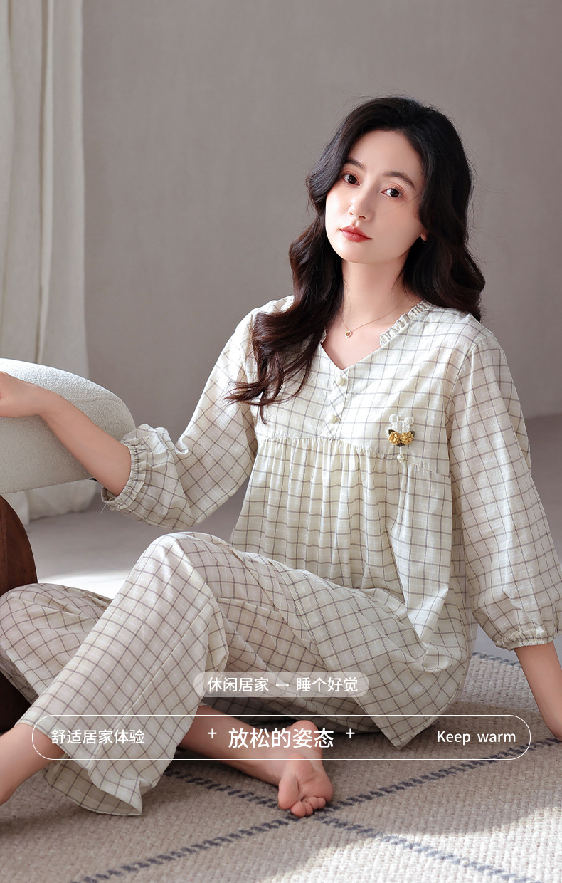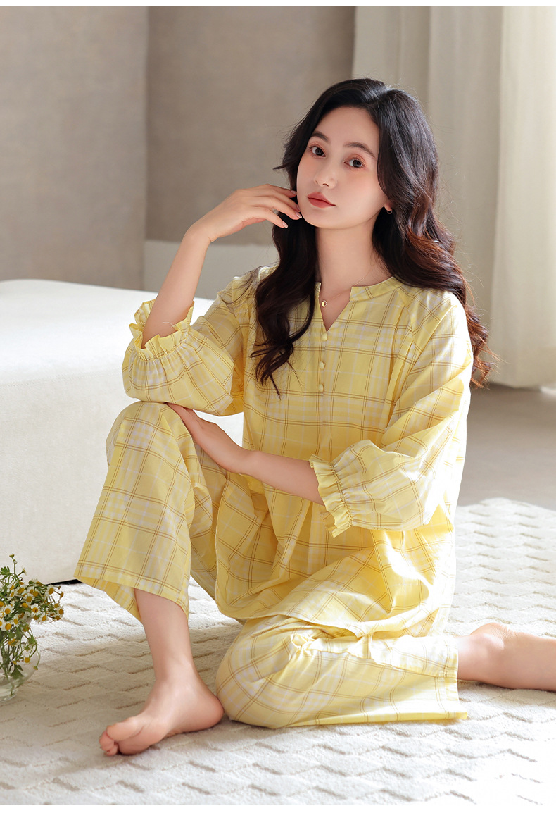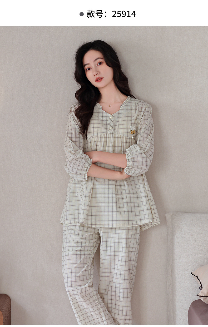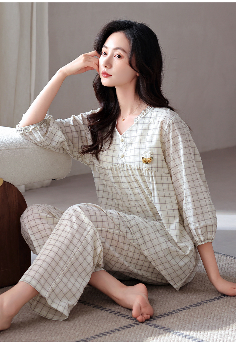 잠옷 여성의 봄과 여름 면화 슬리브 바지 중년 어머니 짠 면화 플러스 사이즈 홈 옷 세트스토어 가기