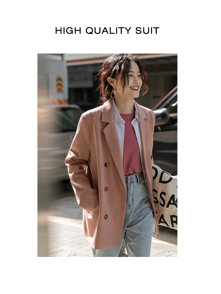 미딩 핑크 세트 재킷 여성의 봄 작은 남자 디자인 센스 틈새 우아한 캐주얼 한국 스타일 봄과 가을 작은 세트스토어 가기