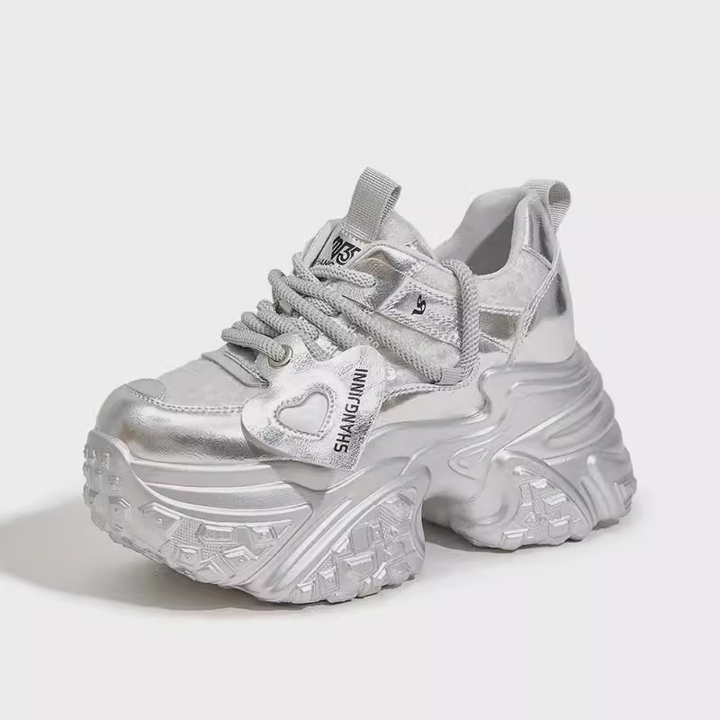 토레 신발 여성 2025 년 봄 새로운 도착 유행 올매치 두꺼운 단독 메쉬 스포츠 캐주얼 신발 슈퍼 두꺼운 단독 높이 증가 여성 신발