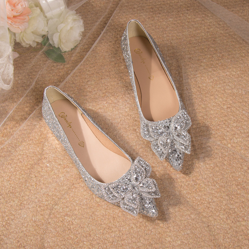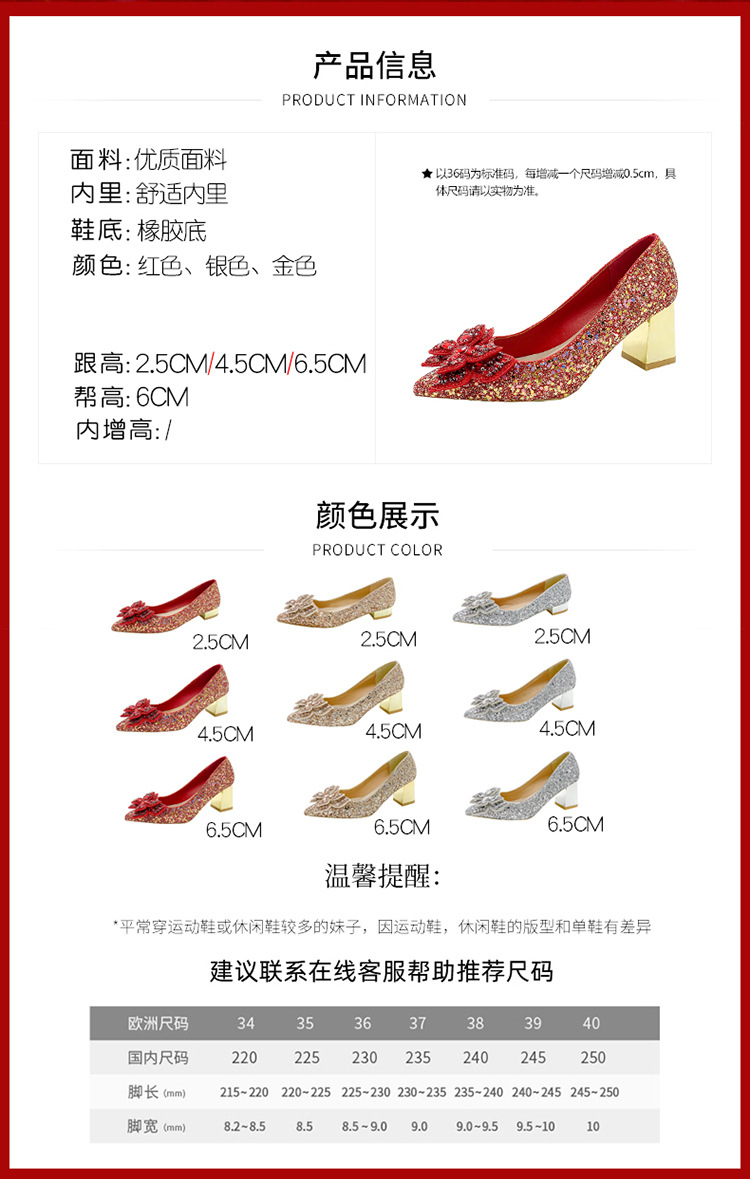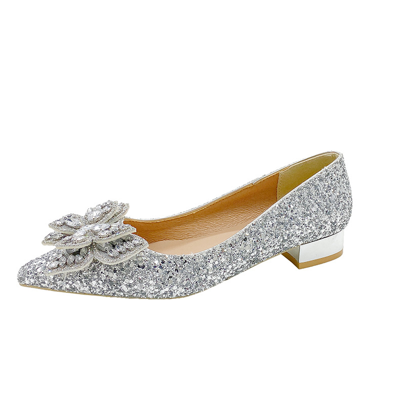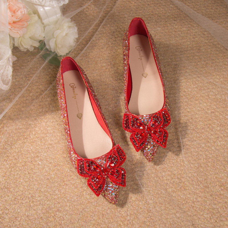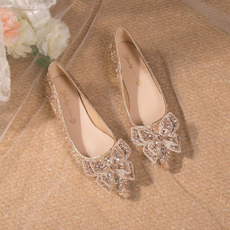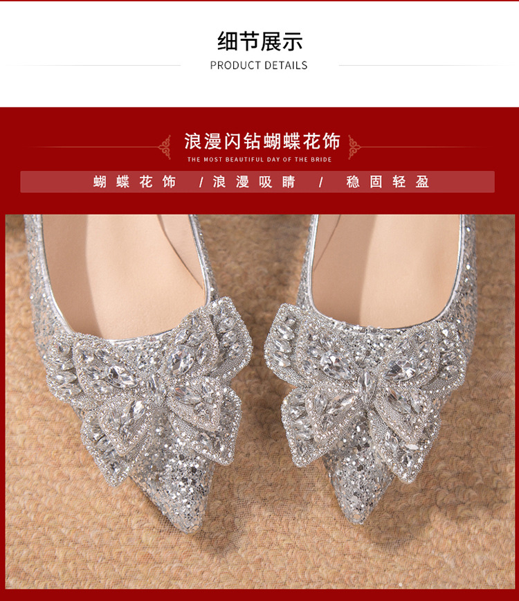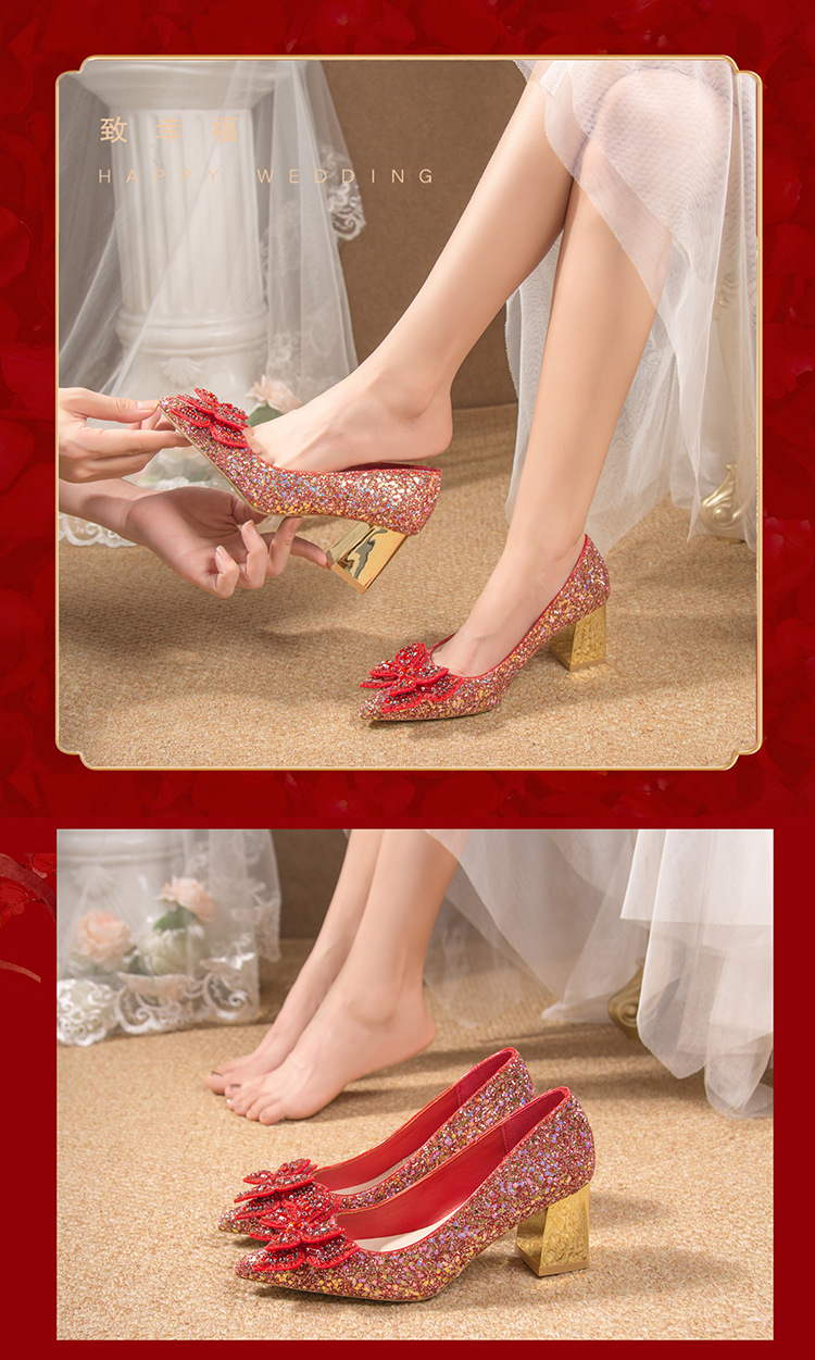 크리스탈 하이힐 여성용 두꺼운 힐 프렌치 스타일 우아한 활 플러스 사이즈 라인석 세퀸 싱글 레이어 신발 Xiuhe 웨딩 슈즈스토어 가기