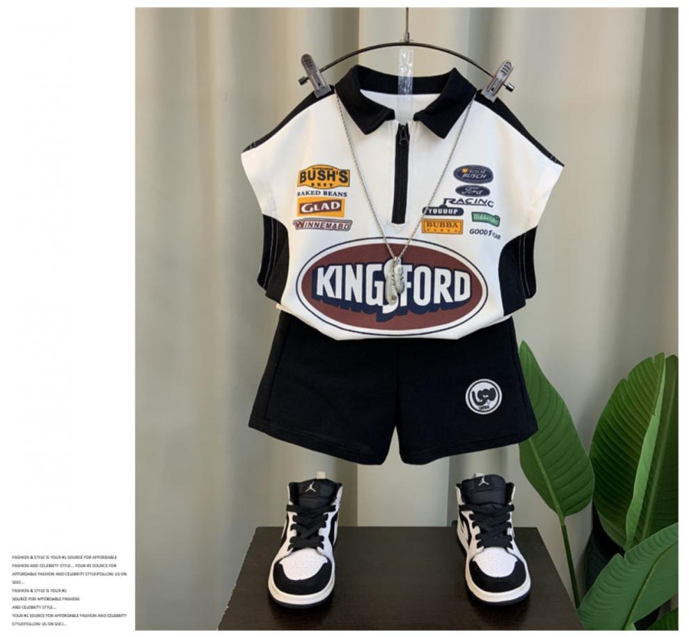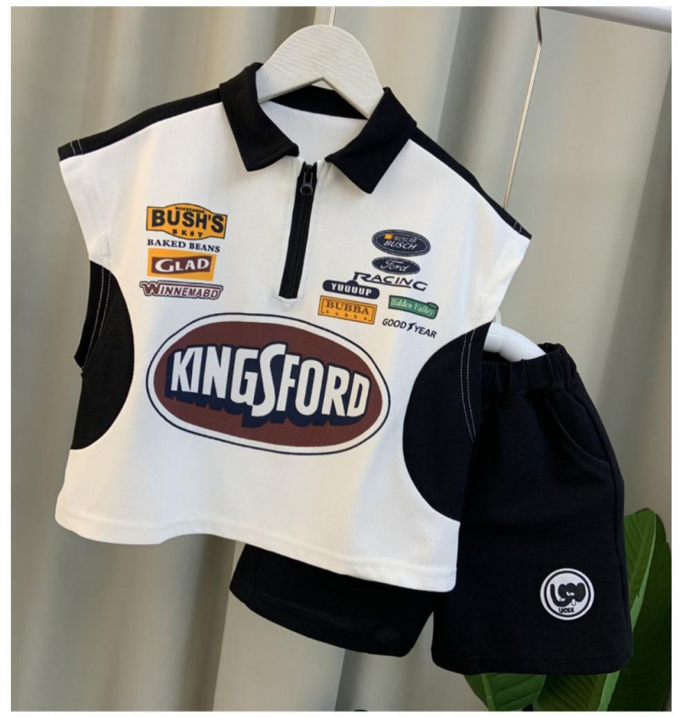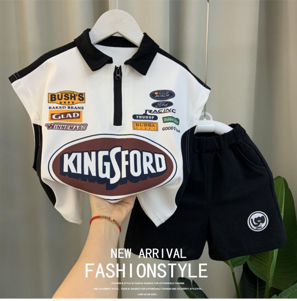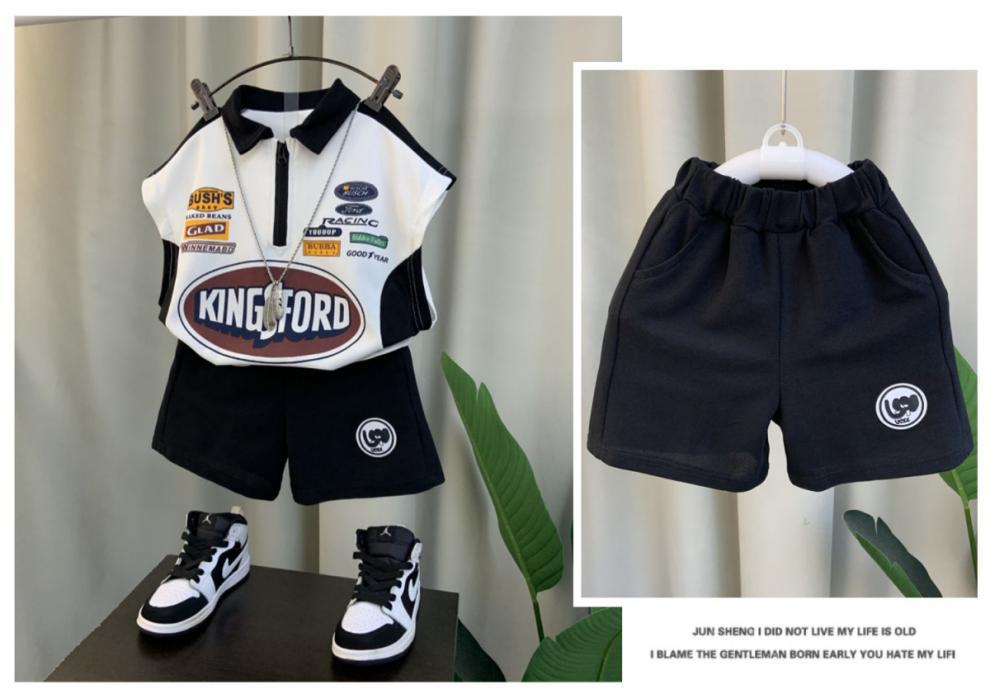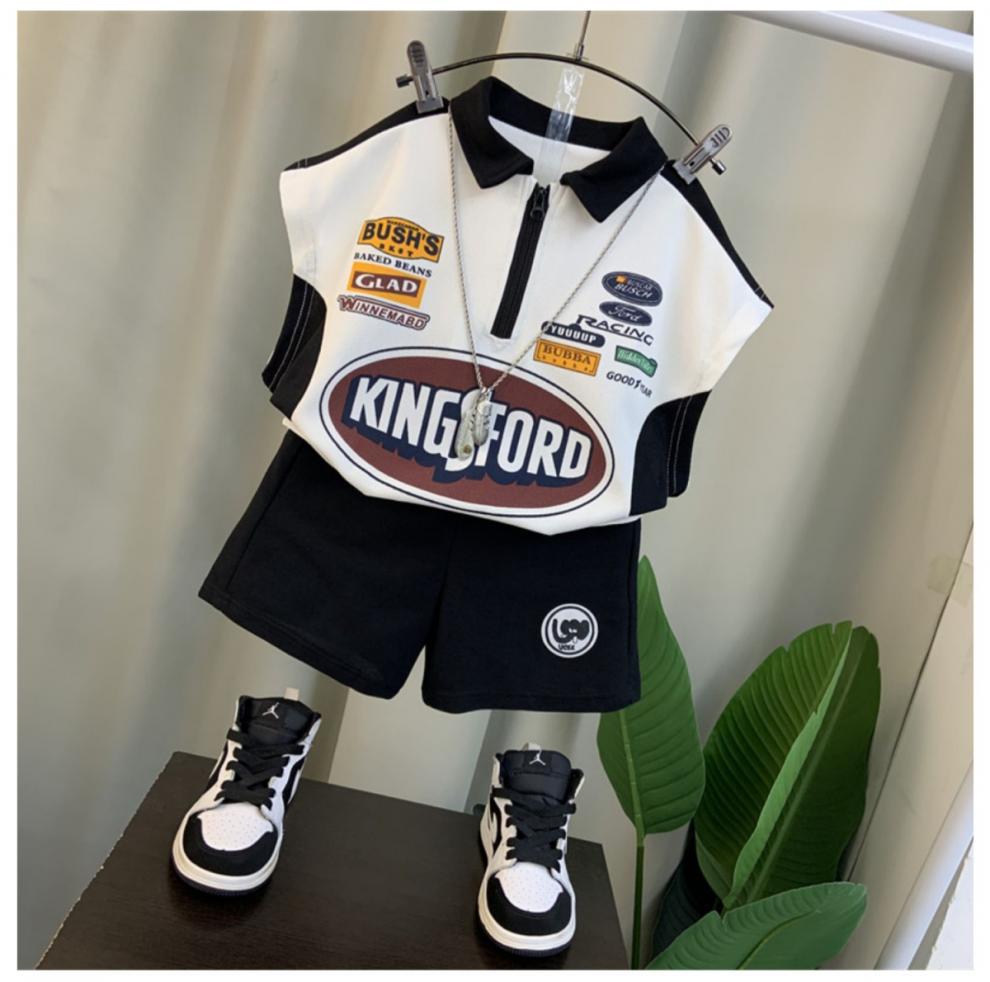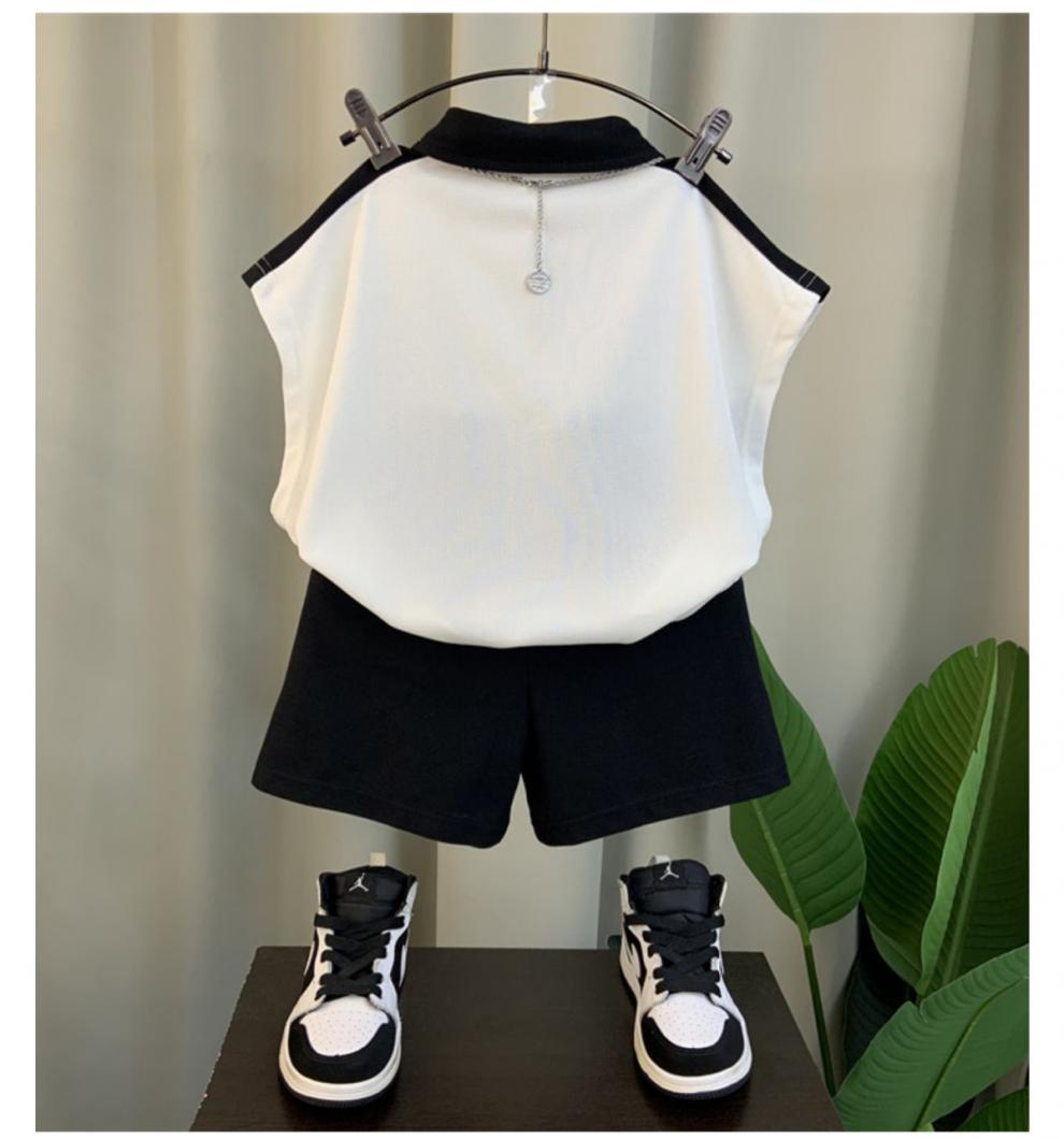 2025 여름 새로운 외국 스타일 아기 여름 스포츠 오토바이 의류 유행 어린이 멋진 잘 생긴 민소매 아동복 소년 세트스토어 가기