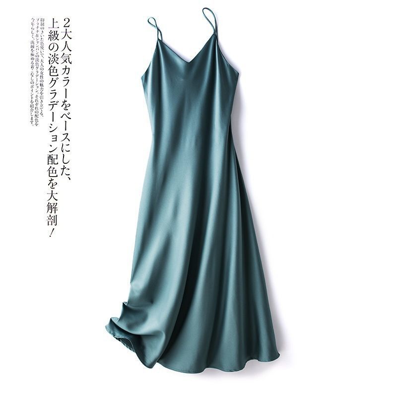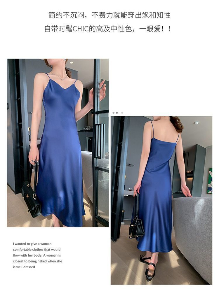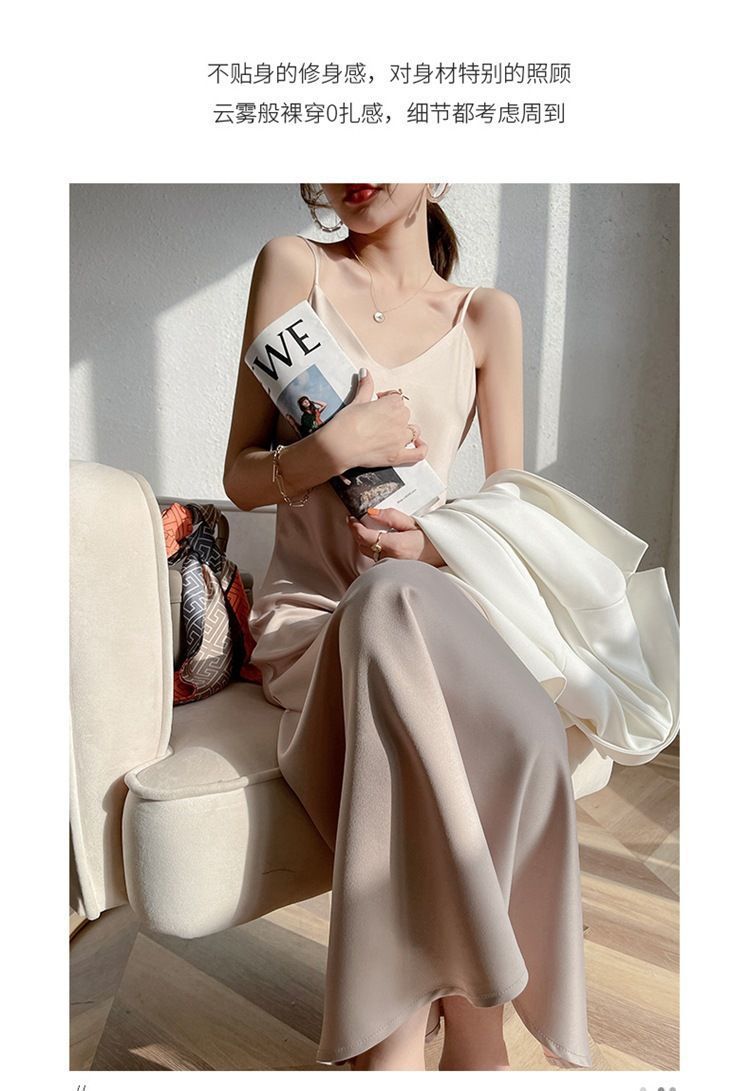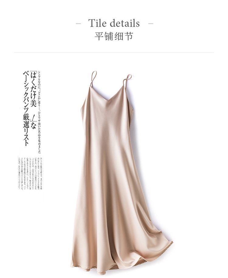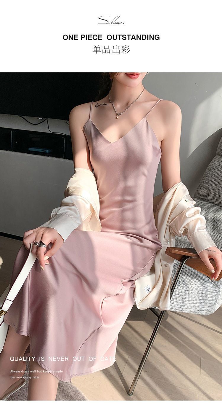실크 슬링 원피스 여성용 솔리드 컬러 여름 중간 길이의 V 넥 슬리밍 세트 내부 웨이스트 슬림베이스 스커트스토어 가기