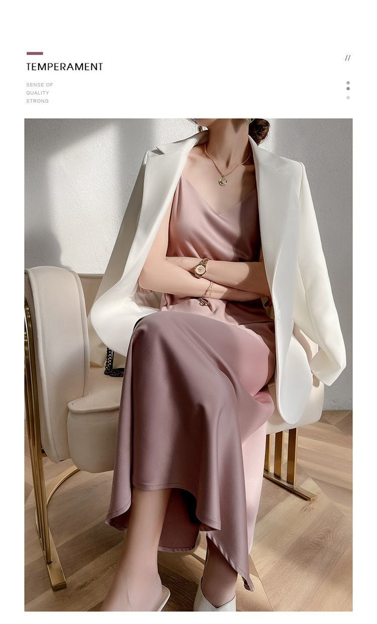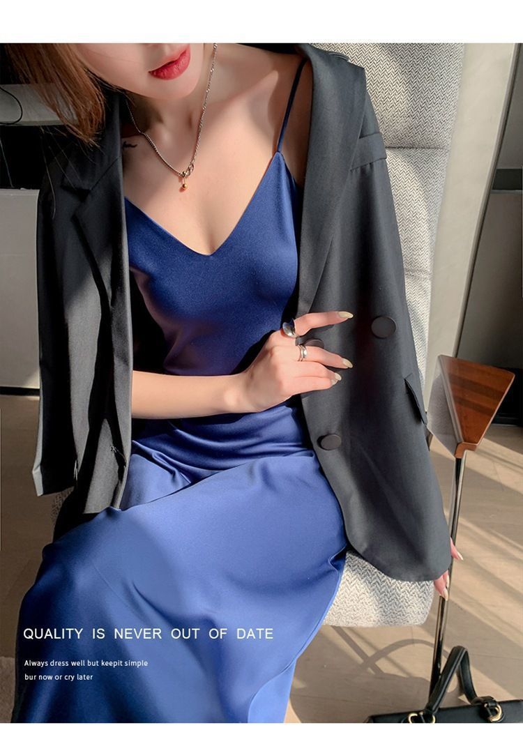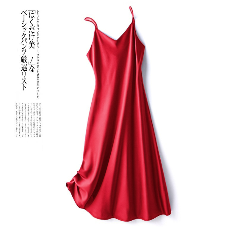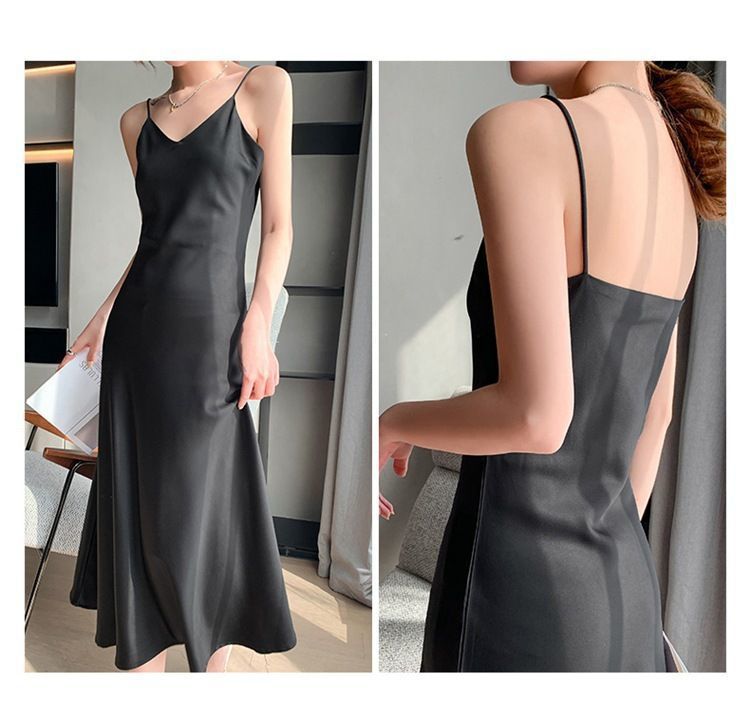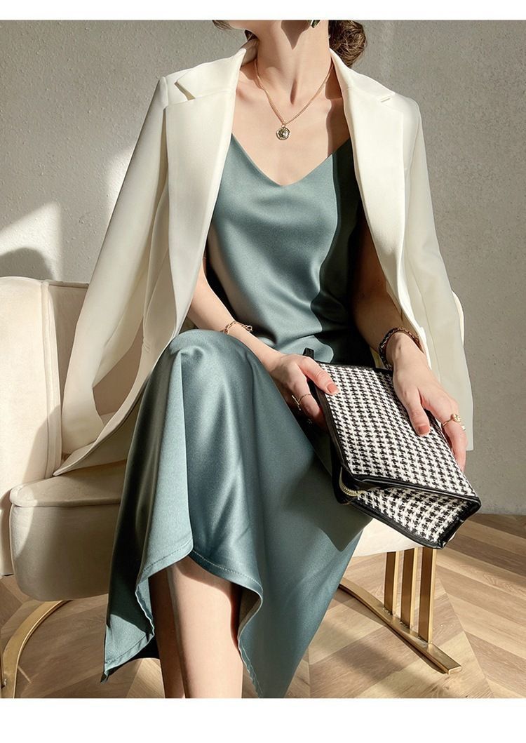실크 슬링 원피스 여성용 솔리드 컬러 여름 중간 길이의 V 넥 슬리밍 세트 내부 웨이스트 슬림베이스 스커트스토어 가기