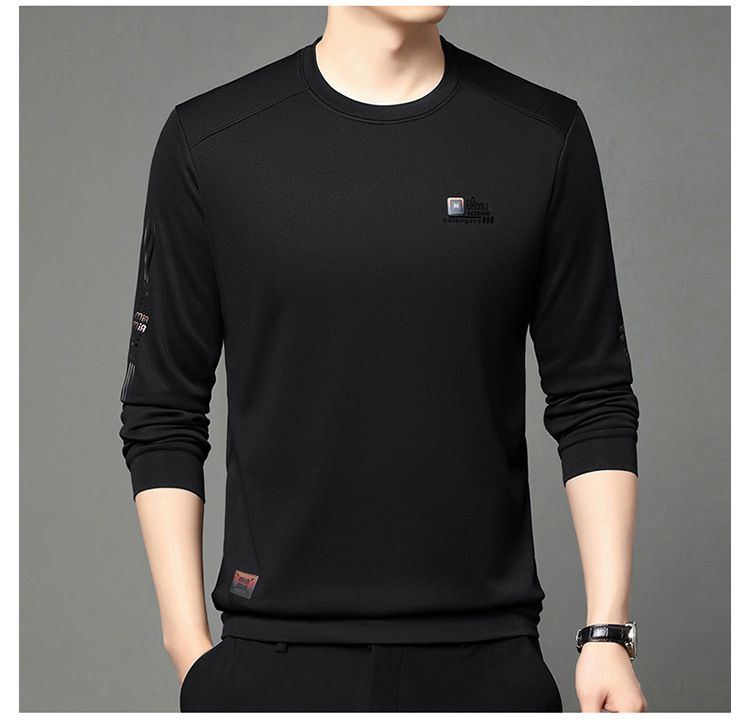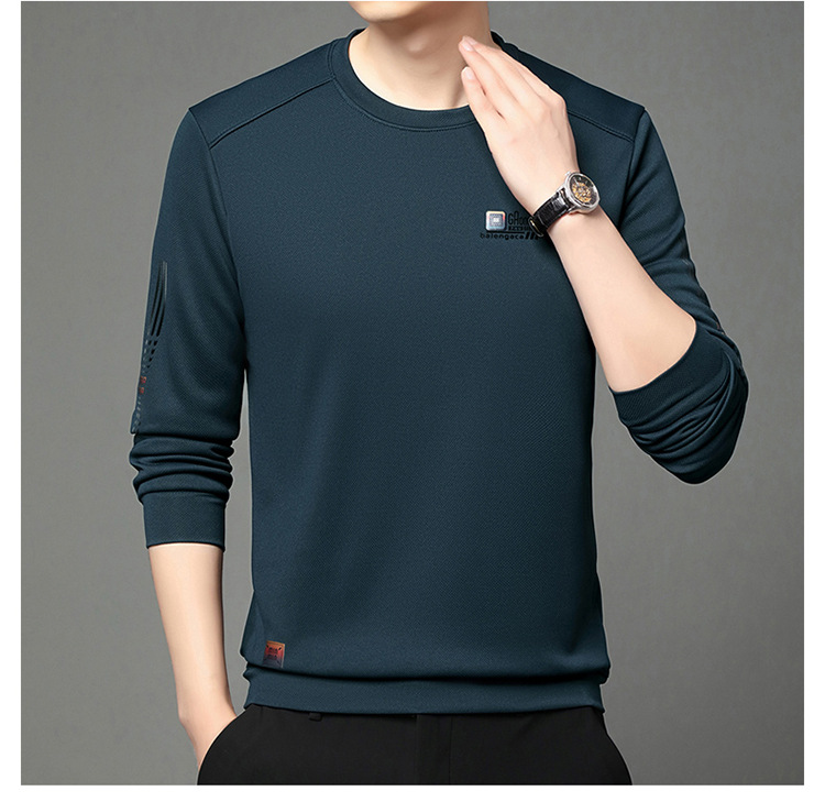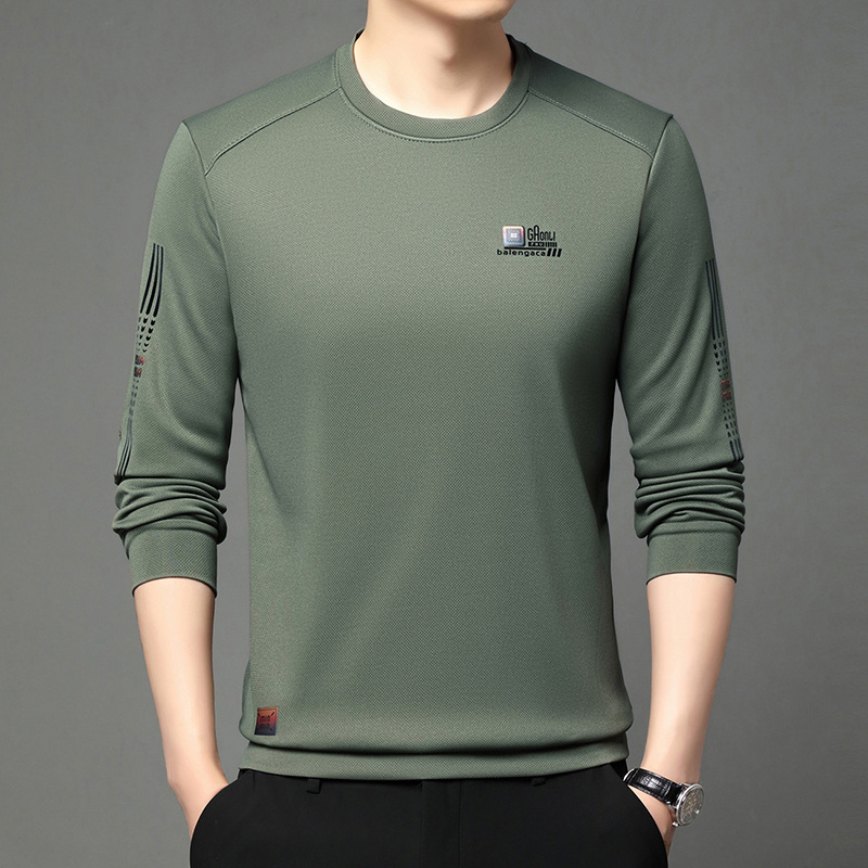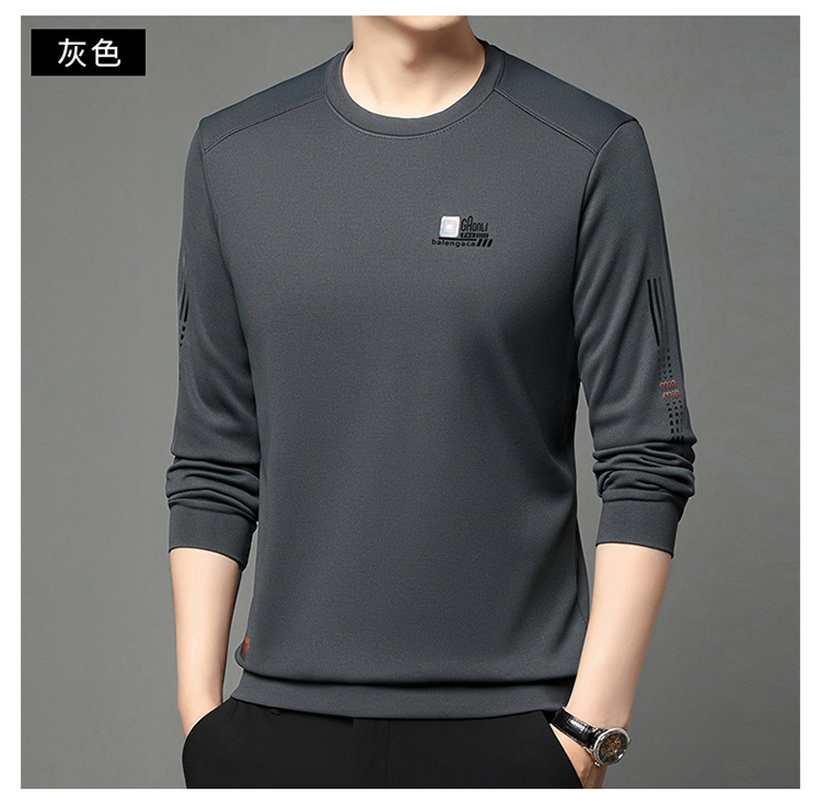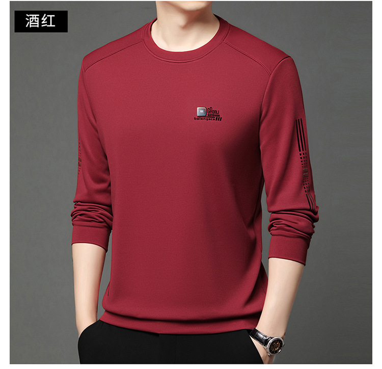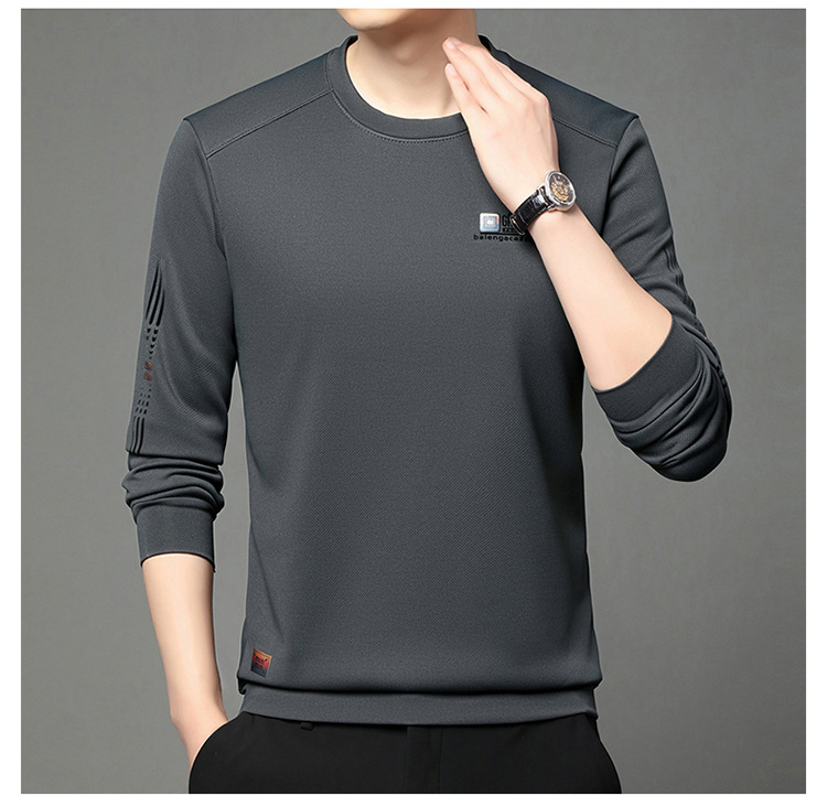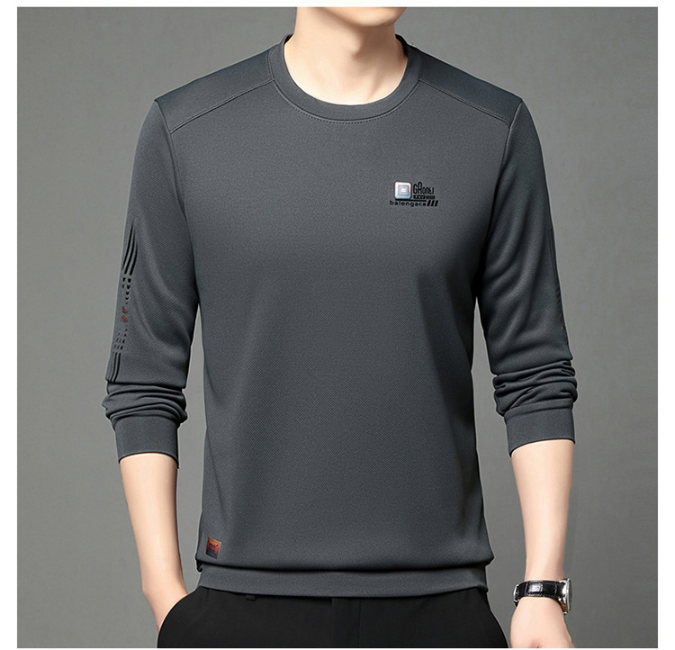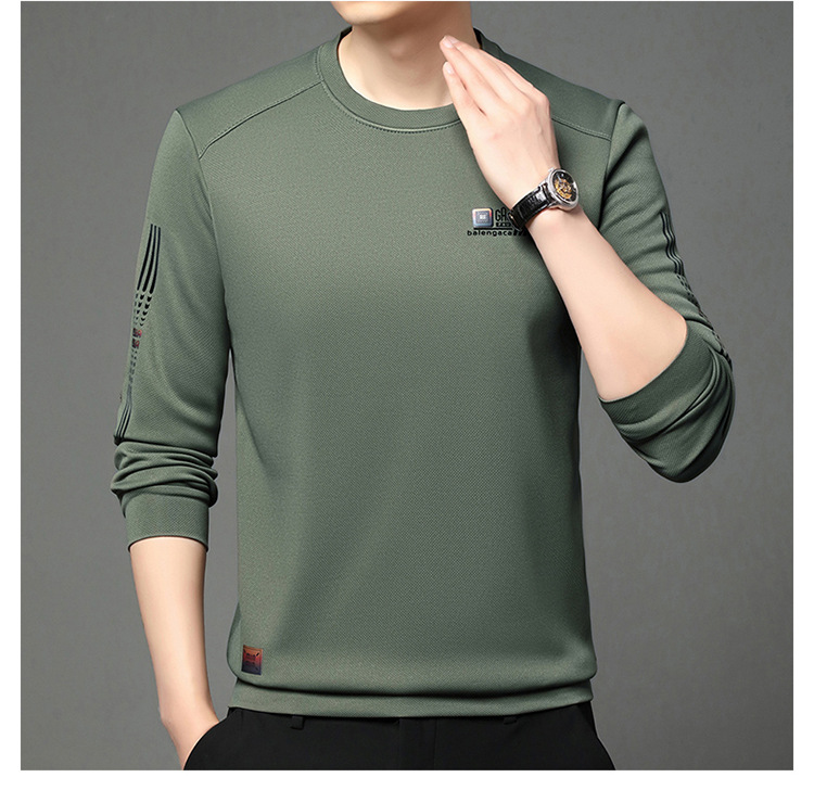 봄과 가을 새로운 긴 소매 무거운 공예 남성 조끼 패션 트렌드 둥근 목 티셔츠베이스 셔츠 머리카락 세대