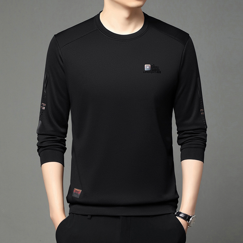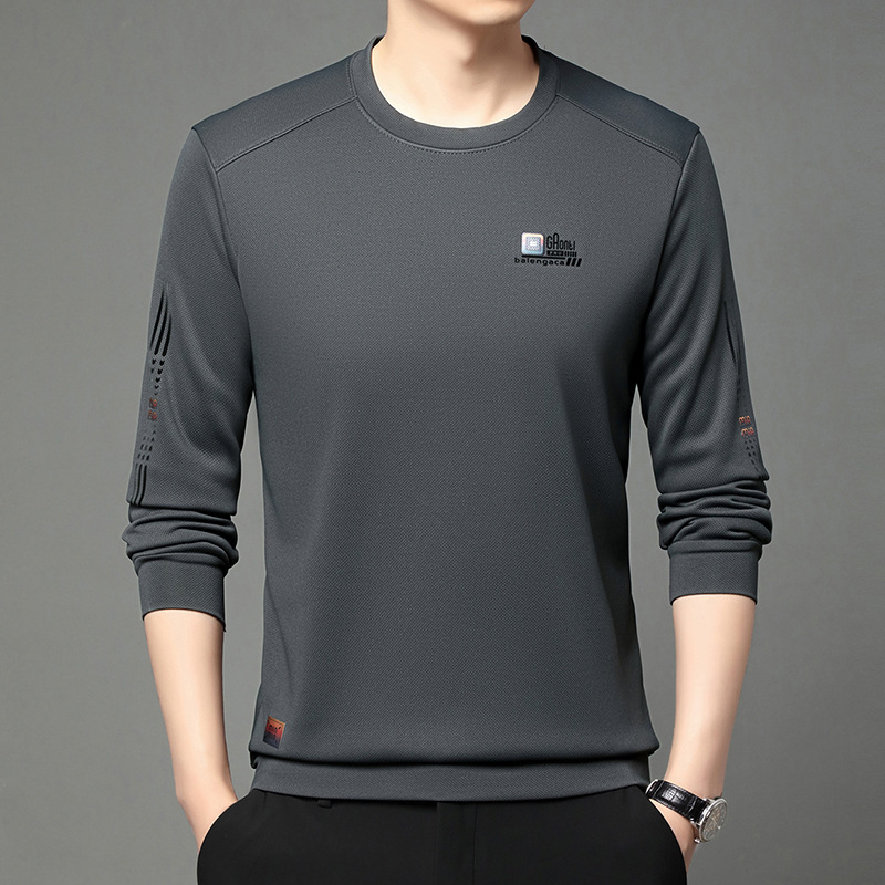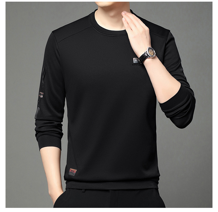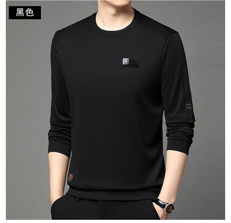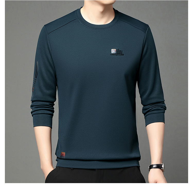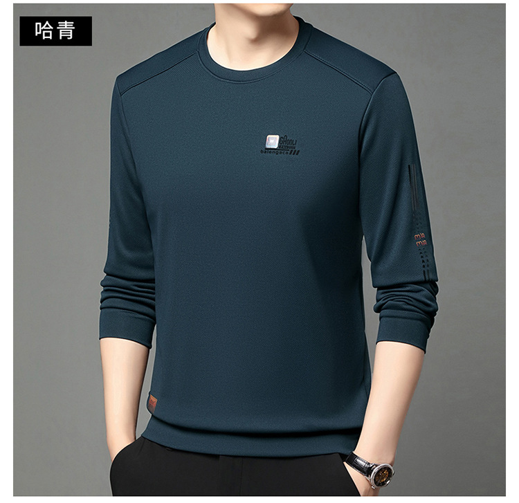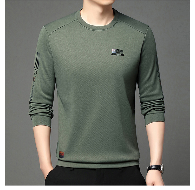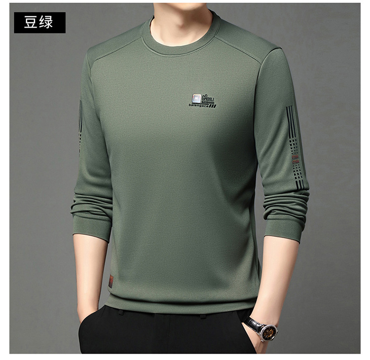 봄과 가을 새로운 긴 소매 무거운 공예 남성 조끼 패션 트렌드 둥근 목 티셔츠베이스 셔츠 머리카락 세대