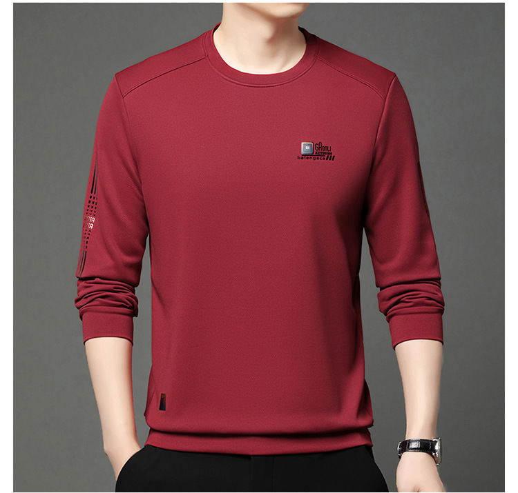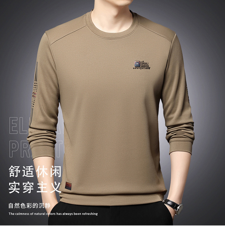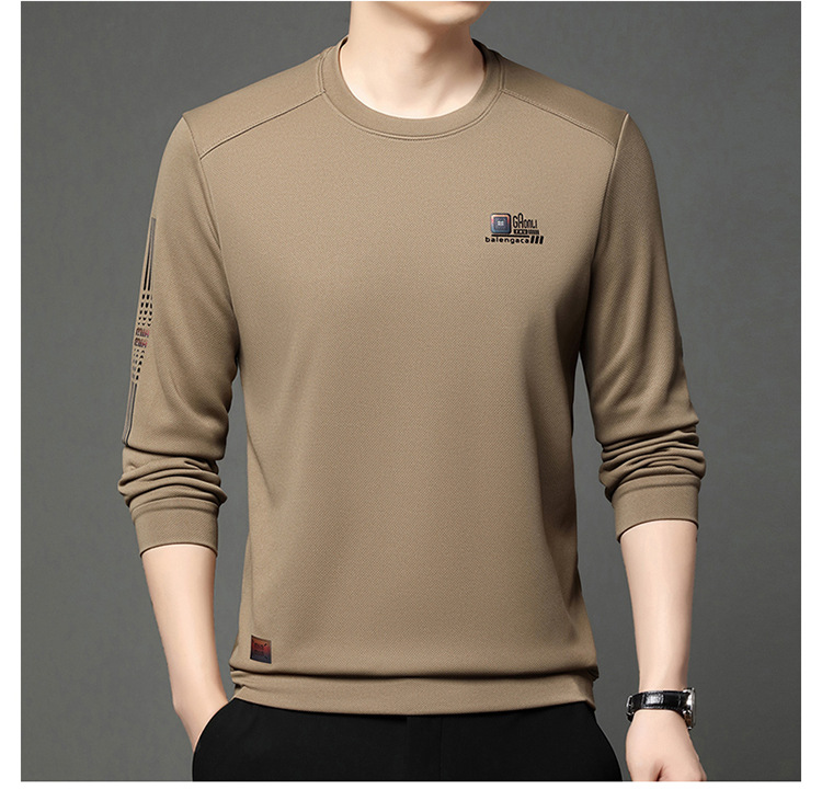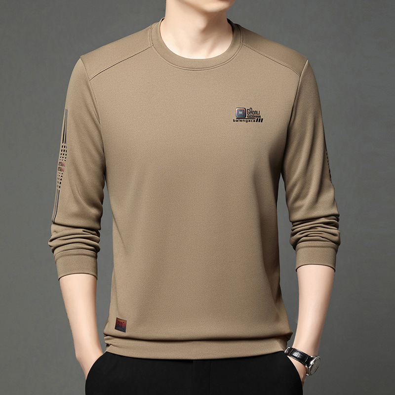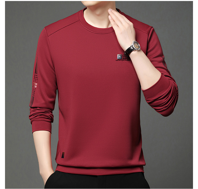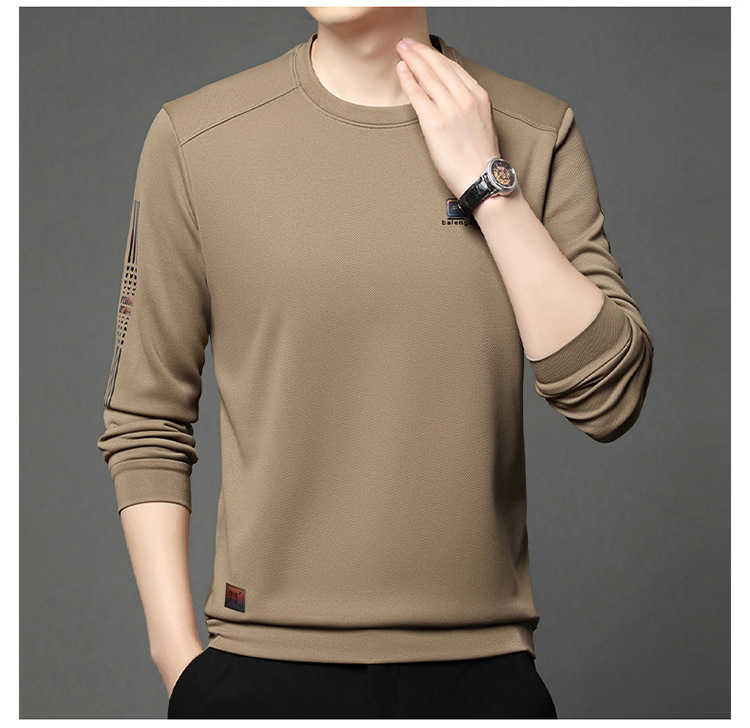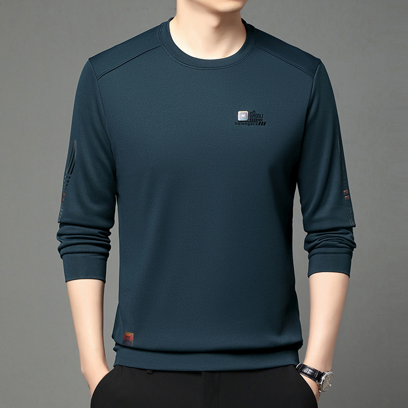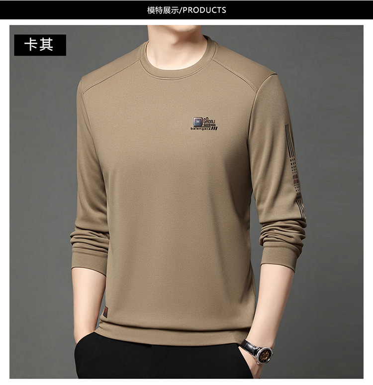 봄과 가을 새로운 긴 소매 무거운 공예 남성 조끼 패션 트렌드 둥근 목 티셔츠베이스 셔츠 머리카락 세대