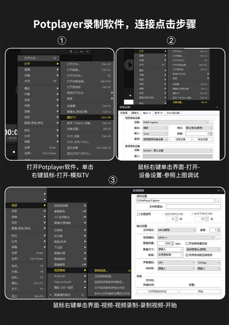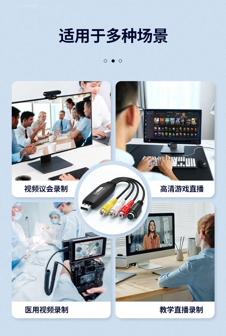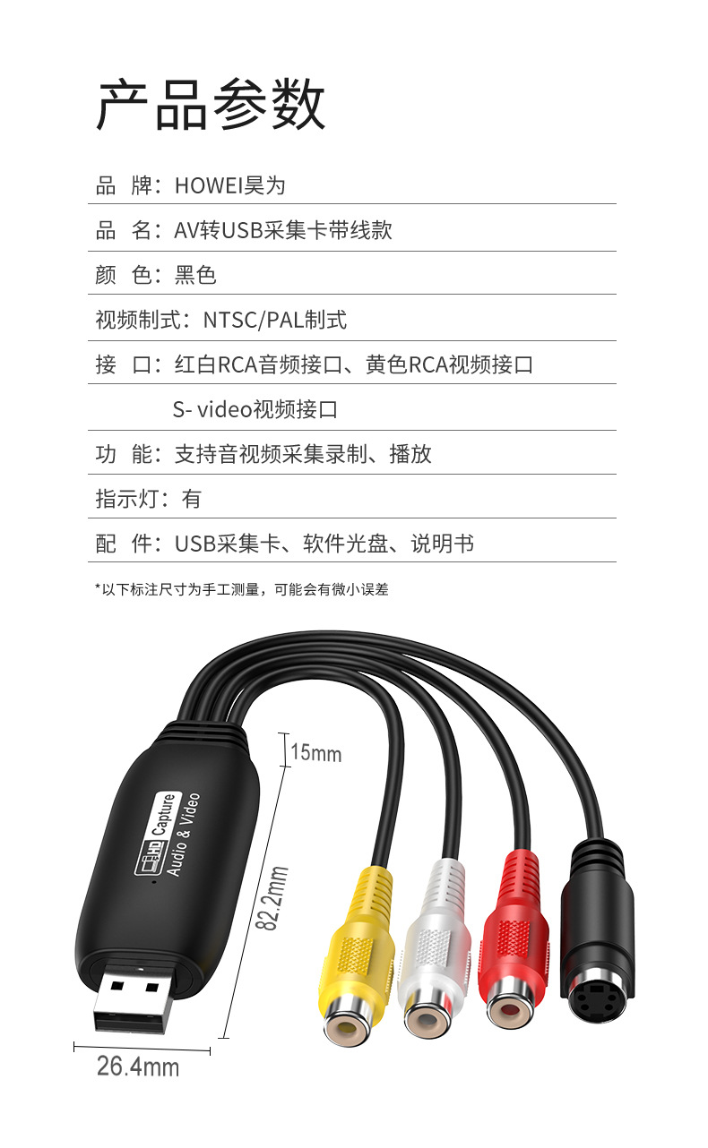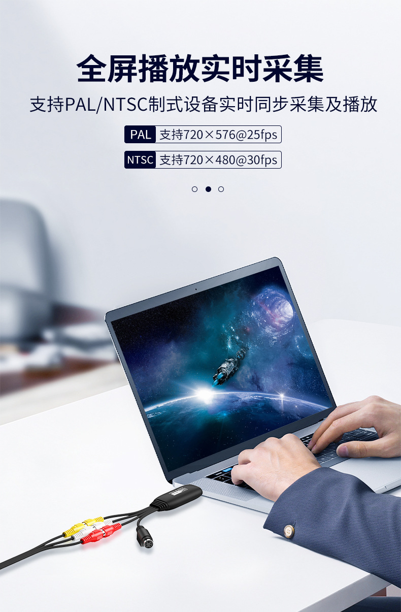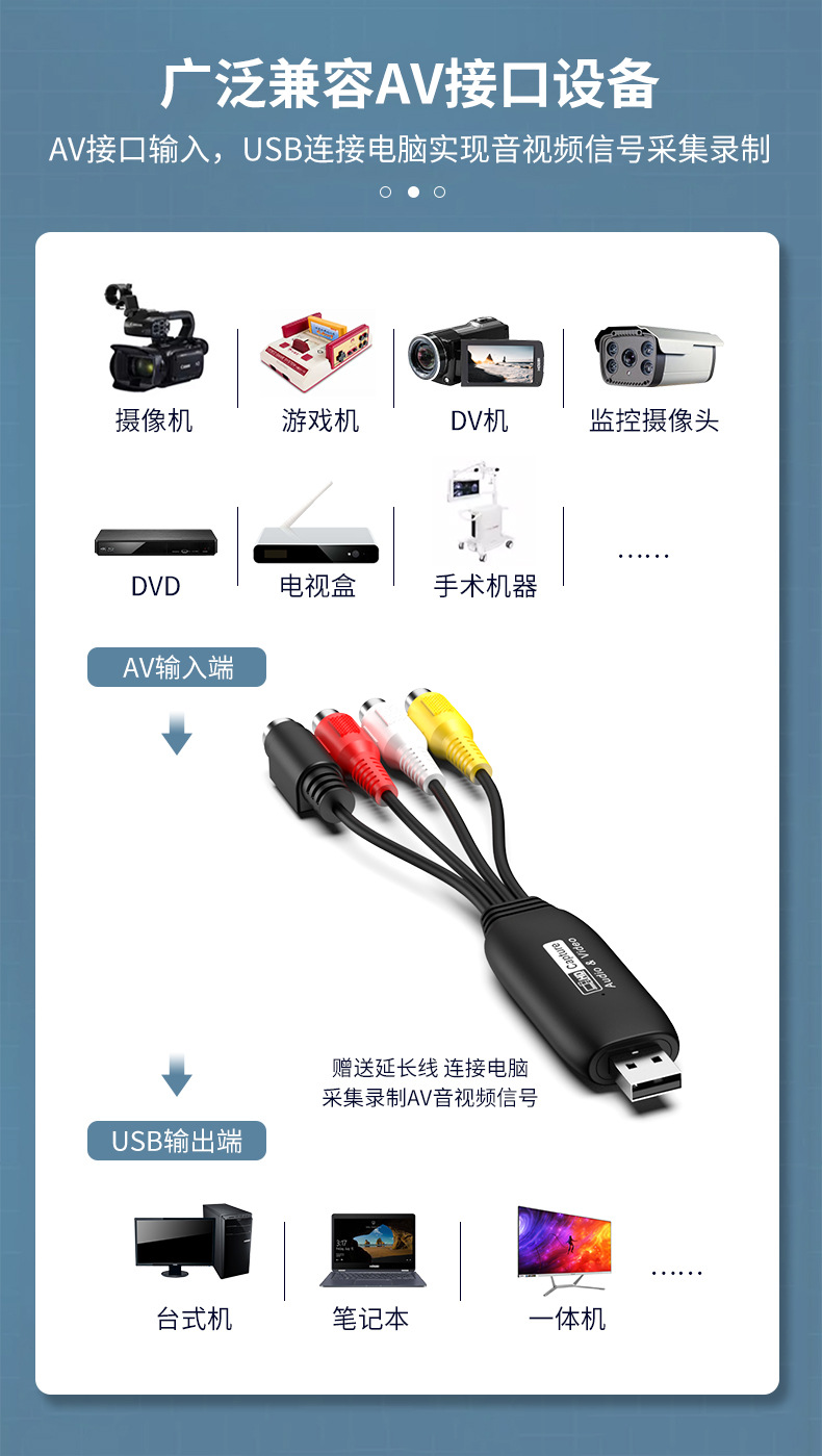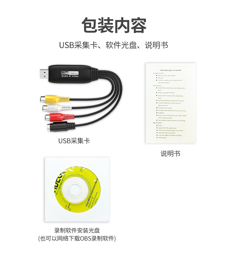 此款采集卡是一款视频和音频采集芯片,内部集成 USB2.0 控制器和数据收发模块、视频 ADC模块、音频 ADC 模块和音视频处理模块。可以将 CVBS、S-Video 和音频信号通过 USB接口传送到 PC、智能手机和平板电脑上预览或采集。MS2107 输出支持 YUV422 和 MJPEG 两种模式,兼容 Windows、Android 和 MacOs 系统。