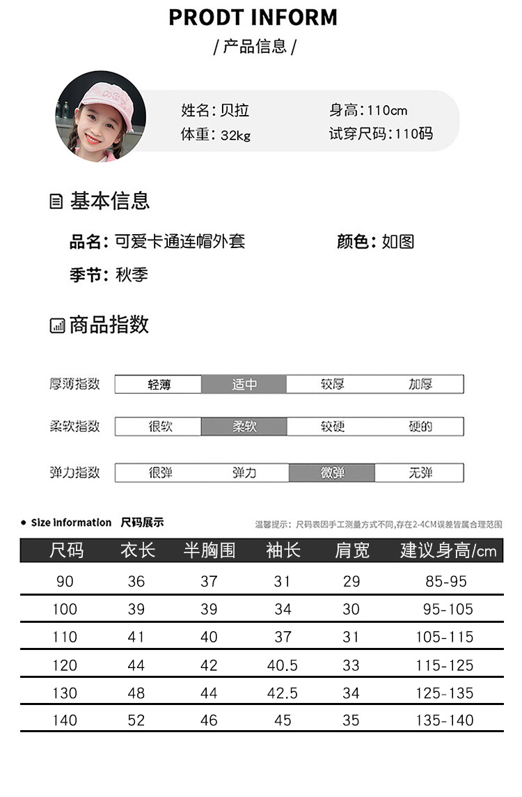 소녀의 봄과 가을 후드 재킷 유행 서양 스타일 어린이 캐주얼 올 매치 재킷 탑 만화 아기 소녀의 가을 패션