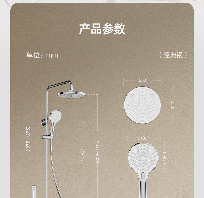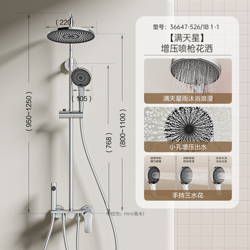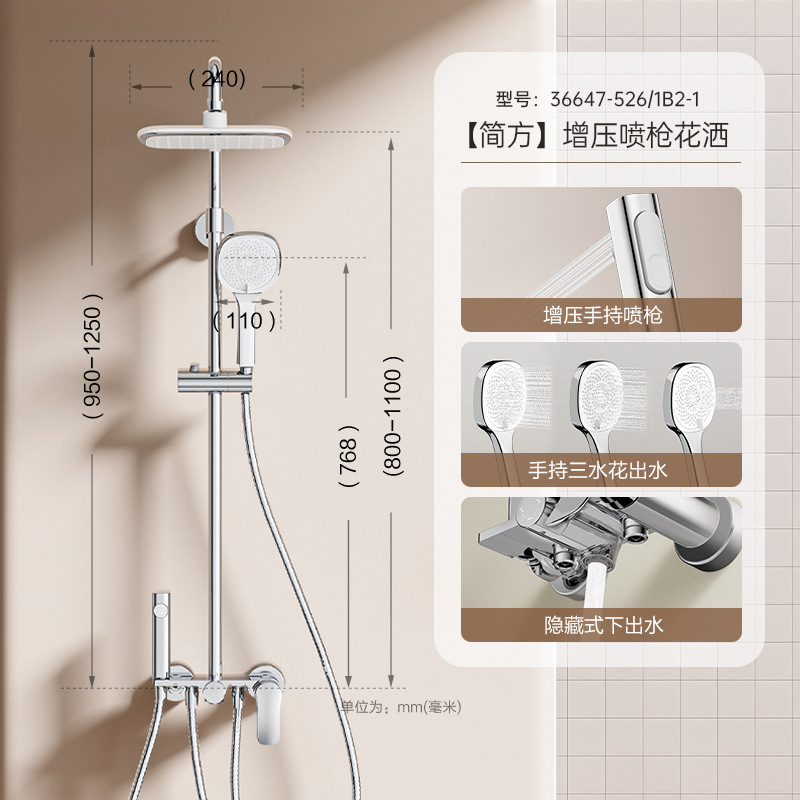 • 브라이트 실버 이중 석회질 제거 + 벽걸이형 수납선반 [탑스프레이 + 샤워기 + 스프레이건 + 수전]