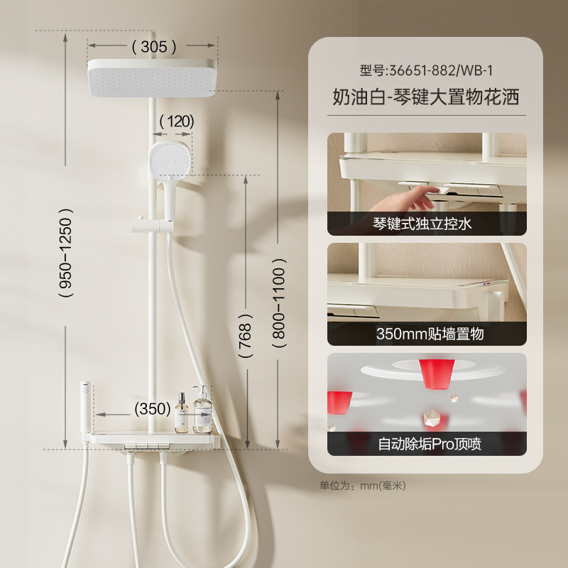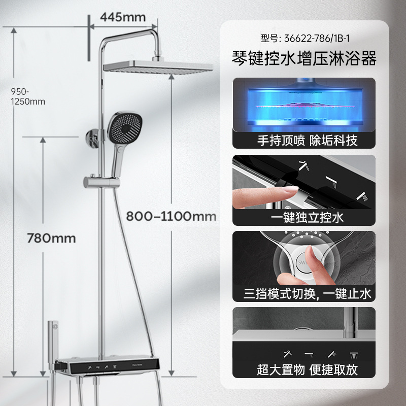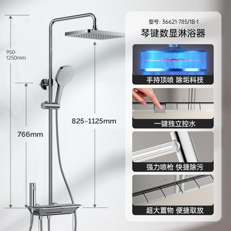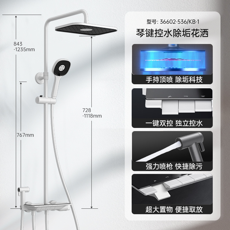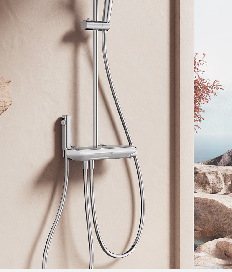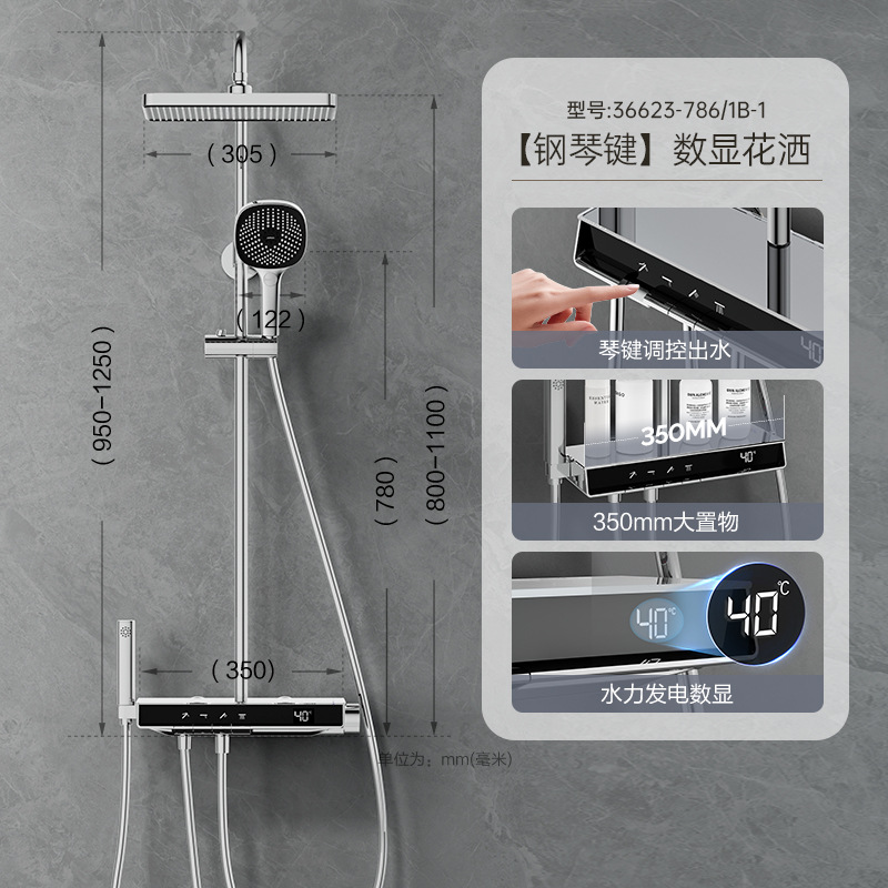 • 4개의 물 배출구를 독립적으로 제어할 수 있는 밝은 은색 건반 + 대형 보관 테이블 [대형 스크린 레인 샤워]