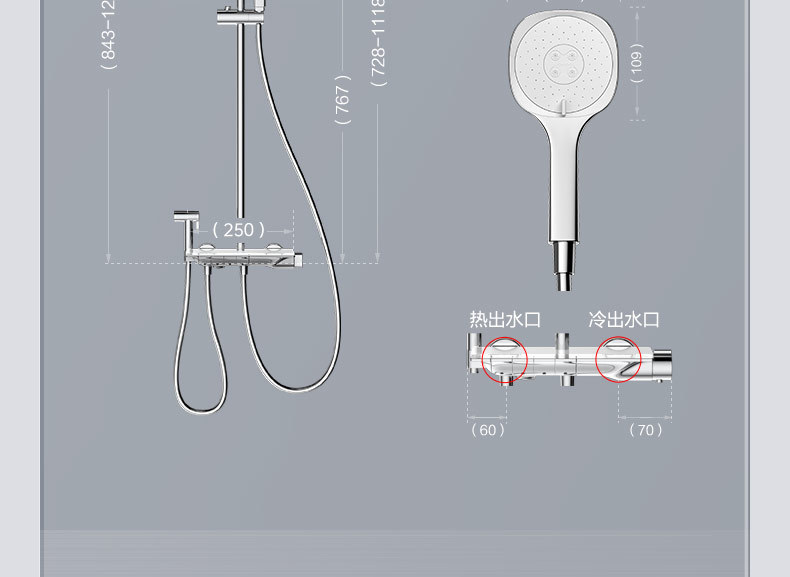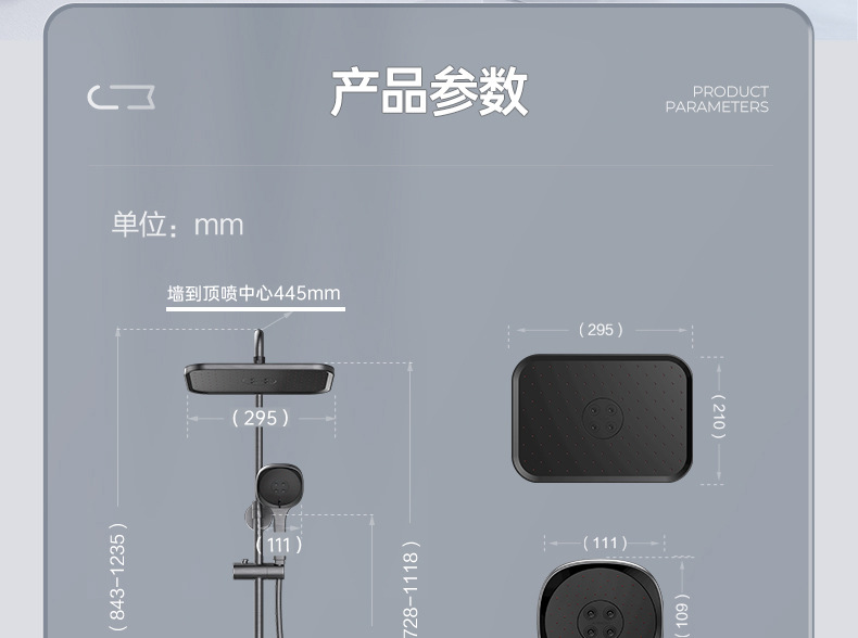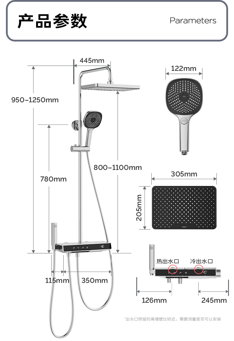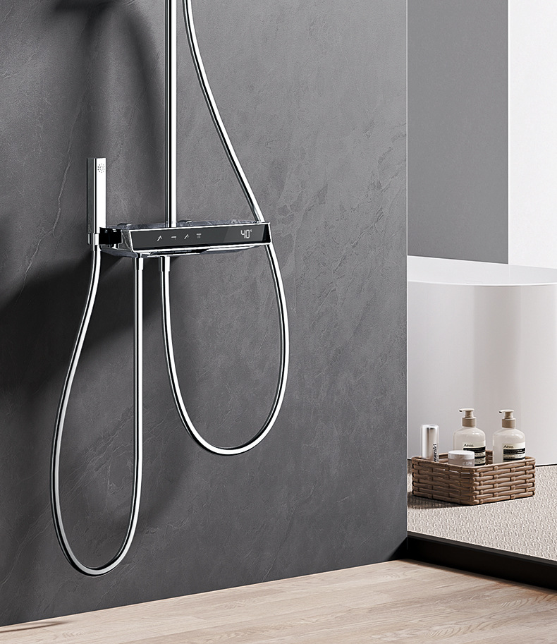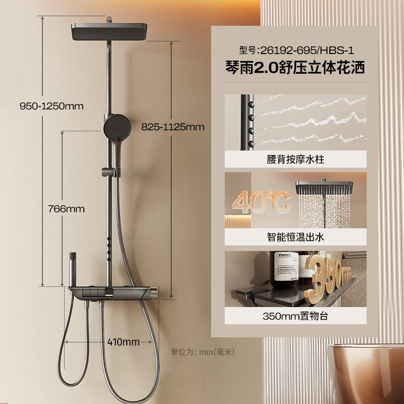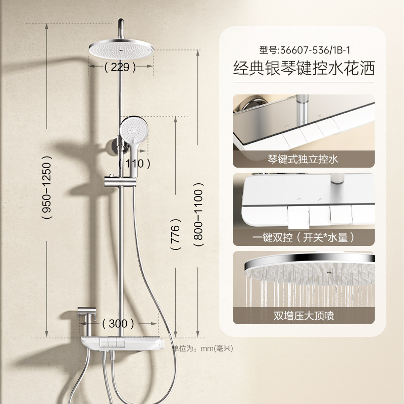 • 4개의 물 배출구를 독립적으로 제어할 수 있는 밝은 은색 건반 + 대형 보관 테이블 [대형 스크린 레인 샤워]