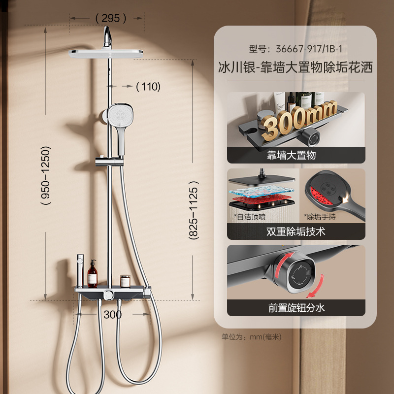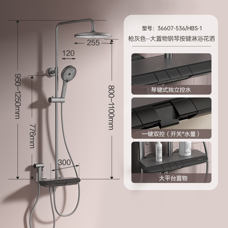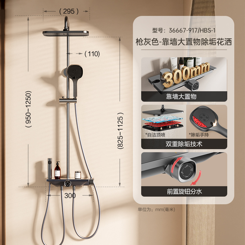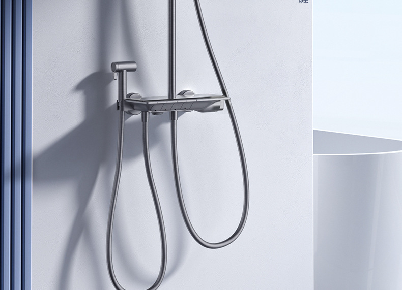 • 건그레이 이중석회질제거 + 벽수납선반 [탑스프레이 + 샤워기 + 스프레이건 + 수전]