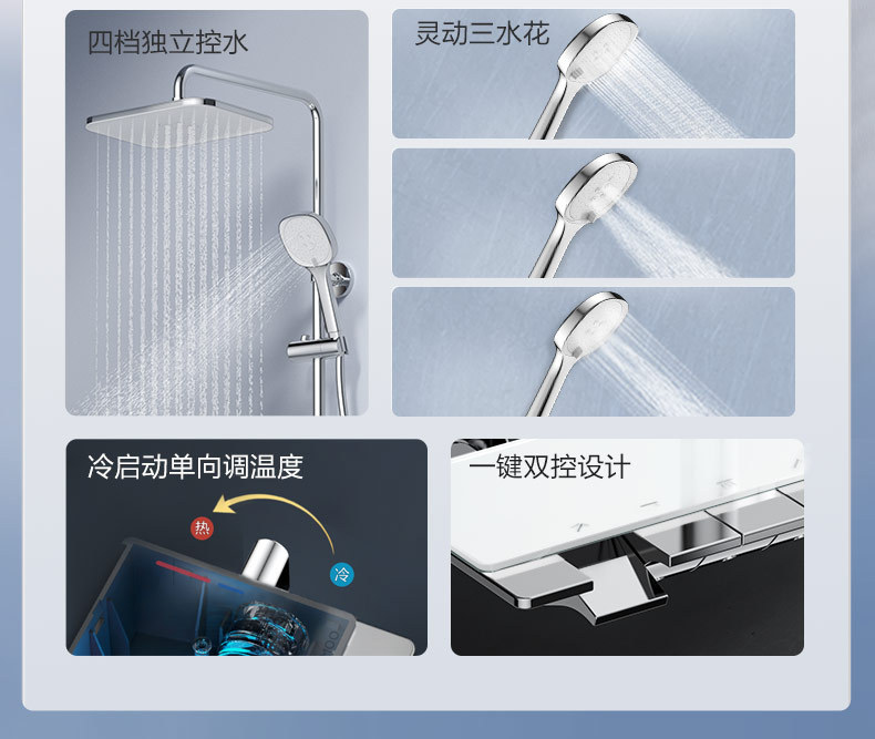 • 브라이트 실버 [키 항온 + 3개의 물 배출구 + 자동 석회질 제거] 원클릭 온도 잠금 및 고온 물 차단