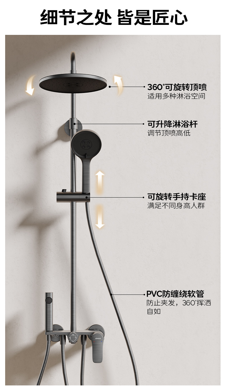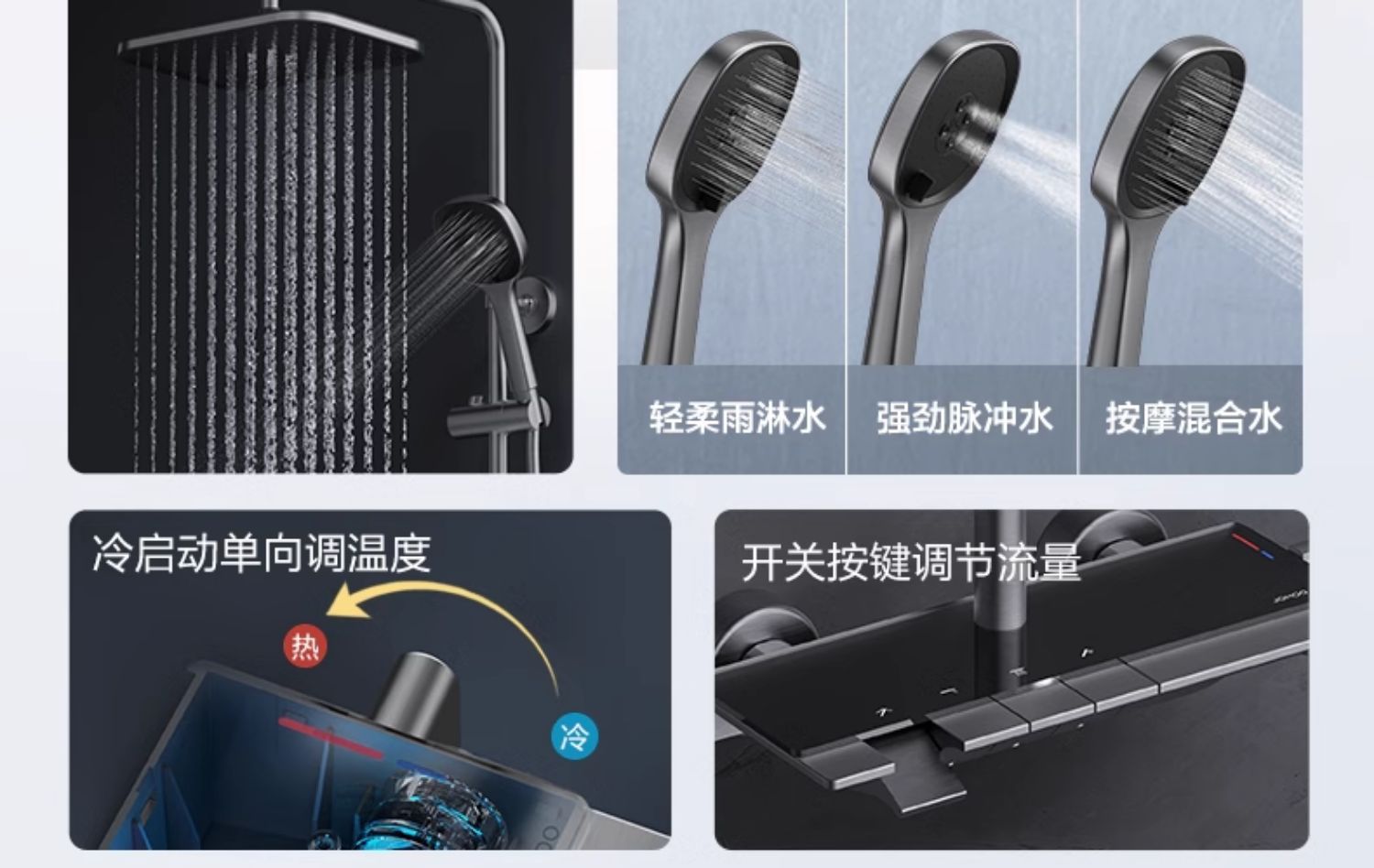 • 건그레이 [키 항온 + 5개 배수구 + 자동 석회질 제거] 원클릭 온도 잠금 및 고온 물 차단