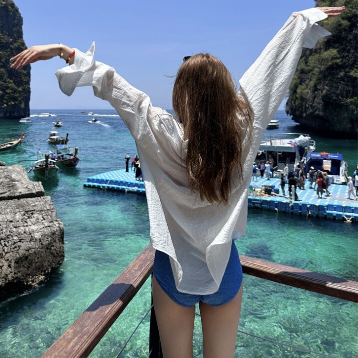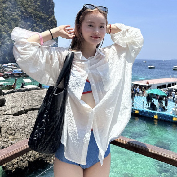 여성을위한 게으른 스타일 흰색 얇은 긴팔 태양 보호 셔츠 봄, 여름 다목적 카디건 셔츠 재킷 루즈 캐주얼 탑